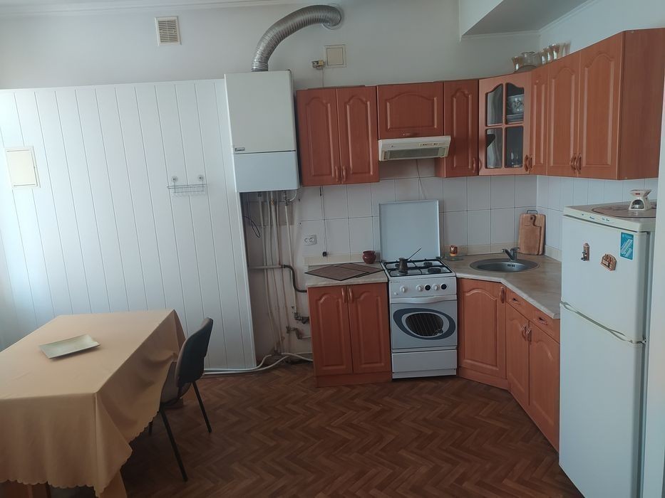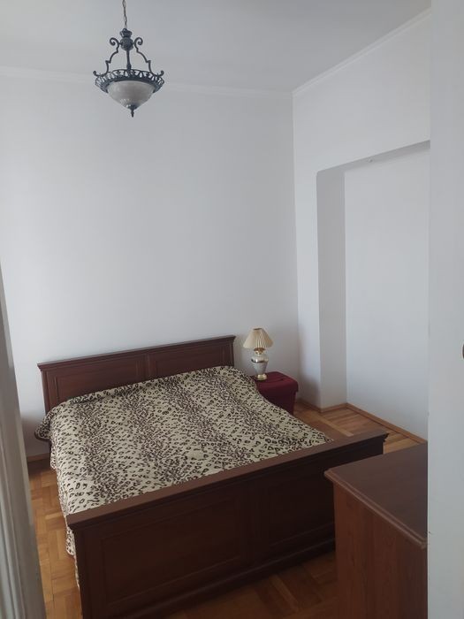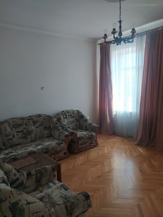 3-х кімнатна квартира по вул. Соборна б. 46, навпроти Міськвиконкому. 4- й поверх 4-х поверхового будинку. Загальна площа 135 м2, кухня- студія 22 м2, кімнати - 64 м2, 20 м2 та 14 м2, велика прихожа, велика ванна кімната. Стелі - 3 м. Є гардероб, балкон, підвал. Спальня - з нішою. Пол - паркет ( ванна кімната - плитка). Санвузол - суміжний. 2-ий рівень - оформлений як житлове приміщення - кімната 64 м2. Ремонту на 2-му поверсі немає.