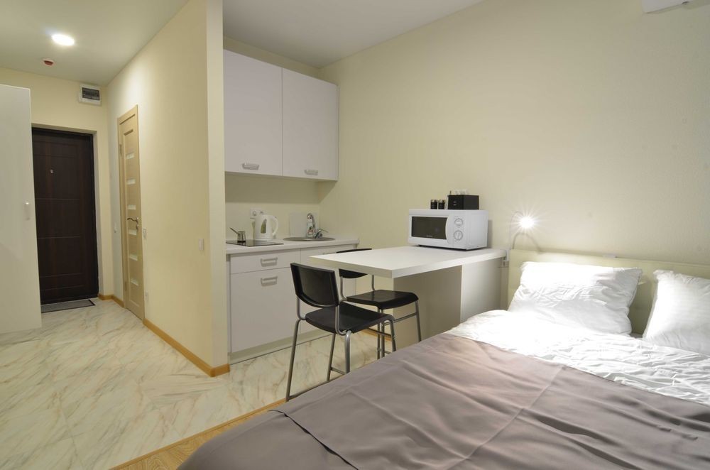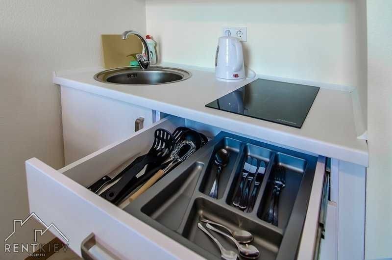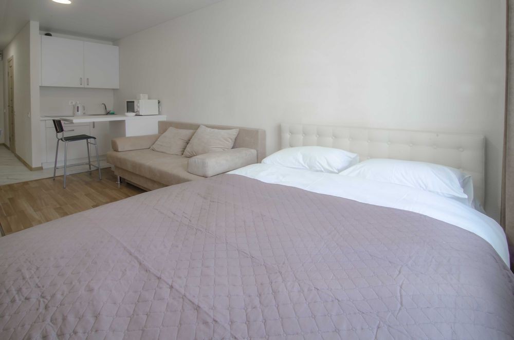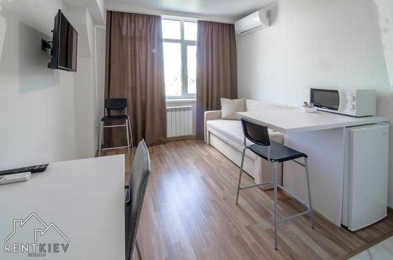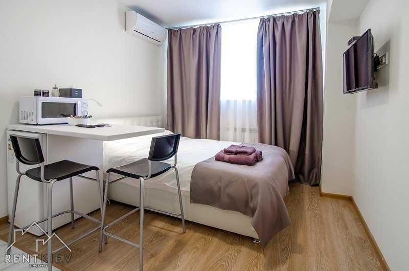 Подобова оренда однокімнатної квартири - студії в Києві. Погодинно квартира не здається! Солом'янський район, масив Шулявка, вулиця Машинобудівна 41, ЖК "Смартхаус". Біля метро "Берестейська" (можна пішки 12-15хв) Квартири на 4-9 поверхах в сучасному 13-ти поверховому будинку з ліфтами ви можете орендувати охайну, комфортну і чисту ізольовану 1-кімнатну квартиру, з цілодобовою охороною. Біля будинку є загальна безкоштовна парковка. На першому поверсі вільний вхід в бомбосховище. Звертайте увагу на те, що є квартири з одним ліжком, а є з ліжком і диваном. При замовленні вказуйте яка квартира вас цікавить і на які дати. В квартирі може розміститися від 2-х до 4-х гостей на двоспальному ліжку та зручному розкладному дивані. У нас обов'язково біла та чиста постіль після прачечної, свіжі рушники, подушки та ковдри. У кімнаті є шафа для одягу, письмовий та кухонні столи, етажерка, дзеркало, передпокій. При оренді подобово вам безкоштовно буде надано доступ до Інтернету. В квартирі є кондиціонер, автономне опалення, гаряча вода. Це дозволить вам створити комфортні умови для проживання. Телевізор смарт, але в деяких квартирах без ютубу. Ванна кімната з душовою. Є пральна машина, електрична сушка для рушників, вішалка для білизни, фен, праска, прасувальна дошка. При добовій оренді надаються мило, шампуні, рушники, туалетний папір. В кухні - холодильник з морозильною камерою, мікрохвильова пічка, електрочайник, каструлі, сковорідка, приладдя для готування їжі. При короткотривалій оренді ви знайдете каву, чай для безкоштовного користування. Балкона в квартирі немає. На стелі встановлено датчики диму, тому палити категорично заборонено. Про всяк випадок є вогнегасник. Місце для куріння є на поверсі (загальний балкон). В будинку здаються декілька квартир в одному підїзді і за бажання ви можете орендувати декілька однотипних квартир. Вартість вказана за добу оренди двохмістної квартири з 14.00 до 12.00 при оренді більше п'яти діб. Оренда на одну добу від 900 грн. Для бронювання квартири на конкретні дати, необхідно робити предоплату. Квартира вважається заброньованою лише після оплати. При необхідності видаю пакет документів на відрядження (фоп2, фоп3). За бажанням оренду можна сплатити кредитною карткою або безготівково. Також забронювати квартиру можна на сайті rentapartment.kiev.ua вказавши дати заїзду та виїзду. Зверніть увагу на те, що доба рахується з 14:00 до 12:00 незалежно від часу заселення. Заселитися в квартиру можна цілодобово, але незалежно від часу заселення, час виїзду до 12:00. Звертайте на це увагу при плануванні поїздки.