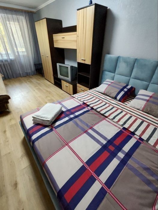 1 комнатная рядом автотостоянка. Квартира укомплектована всем необходимым для комфортного проживания. Имеется вся бытовая техника: Кондиционер, Wifi. Комфортное спальное место, 2+2 Чисто, тепло и комфортно! На стоимость аренды влияет кондиционер, день недели, количество человек и дней. Мы всегда рады нашим гостям, и с радостью ответим на все интересующие вас вопросы!