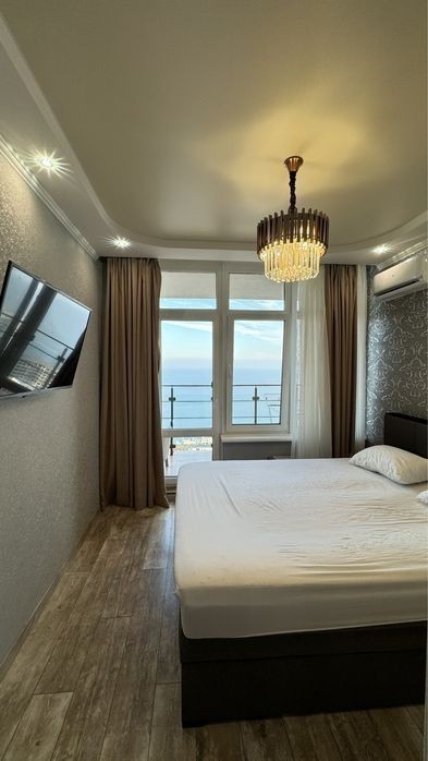 Сдаеться посуточно квартира с террасой и прямым видом моря 44 Жемчужина, на ул. Каманина 16 а 23 этаж 45 м2. Спальня+ кухня студия с розкладным диваном. Большая Терасса с прямым видом моря. 5 минут к морю пешком, 8 минут пешком к ибице. Есть большая гардеробная, посудомойка. От 1500 грн
