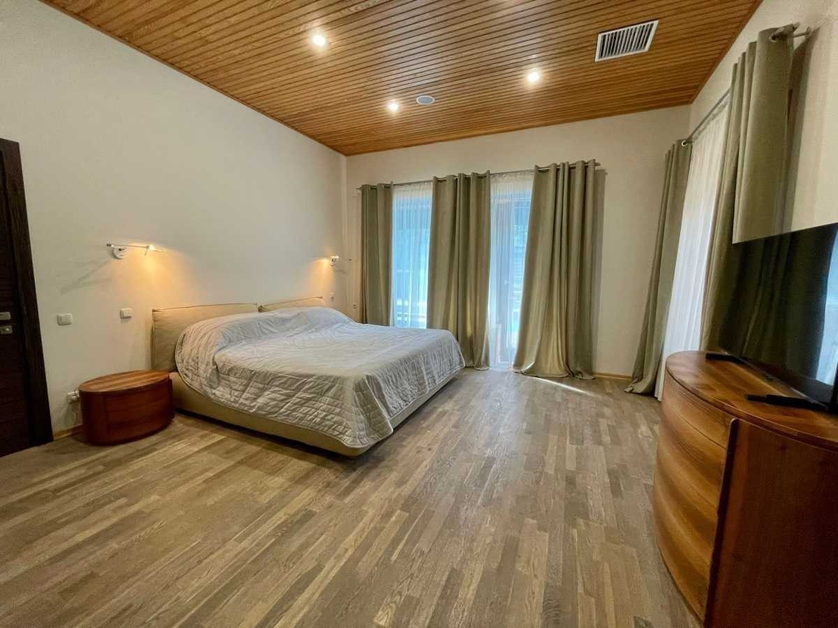 Аренда современного дома на Осокорках полная комплектация, рядом метро, Новус, Трц Аркадия, река Днепр, детские сады, новая школа, рестораны. Дом площадью 280 кв. м в одном уровне, кухня-гостиная с камином, три спальных комнаты, сауна, большая гардеробная, 3 санузла, система кондиционирования. Дом очень уютный и светлый за счет панорамных окон. Есть все необходимое для круглогодичного комфортного проживания, современная техника (стиральная- сушильная машины, посудомоечная, телевизоры, система очистки воды, своя скважина). Гараж на две машины. Сигнализация, интернет все подключено. Участок 8 соток благоустроенный, с зоной отдыха, барбекю и бассейном. Ландшафтный дизайн. 90000 грн