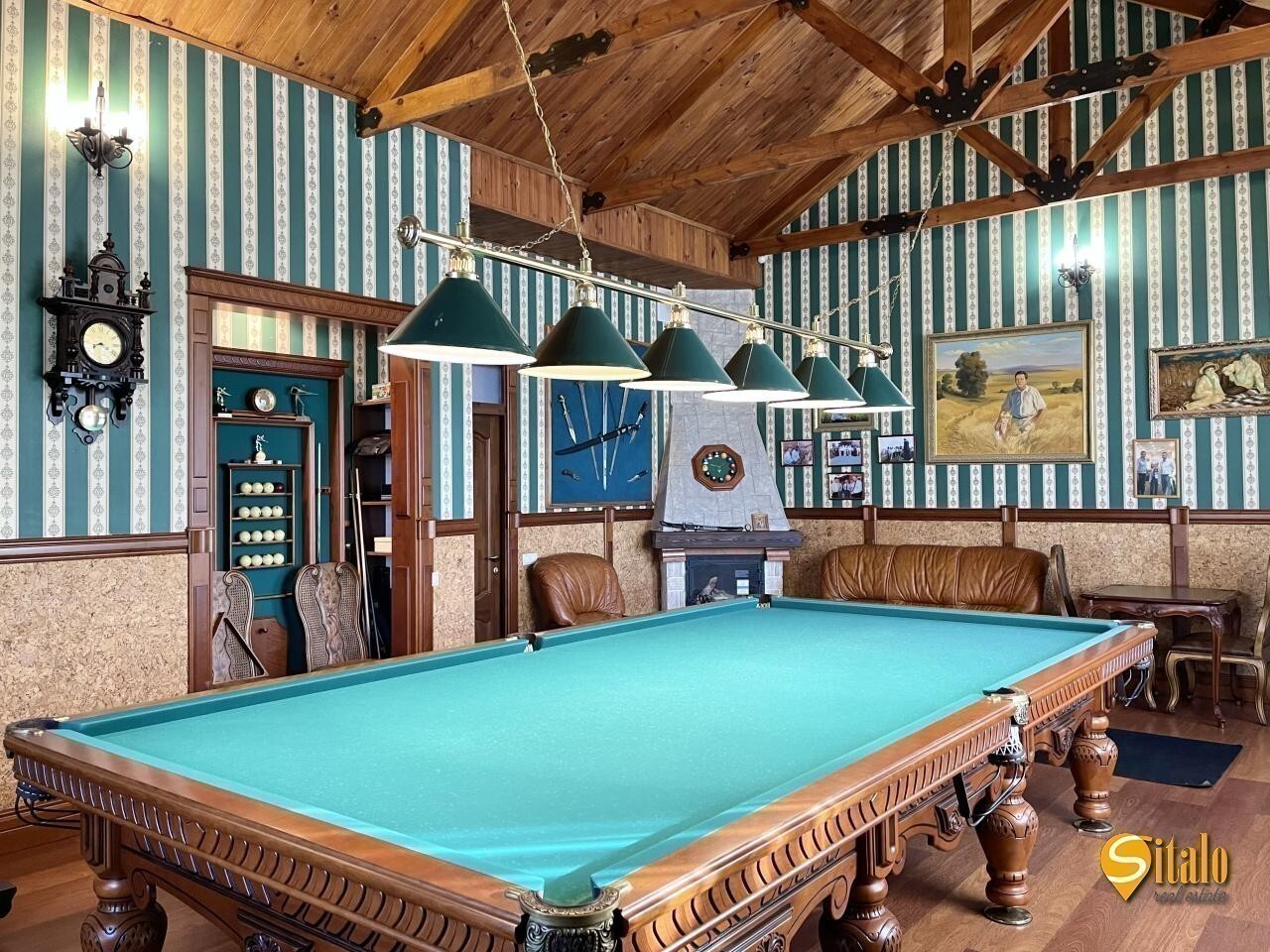 Вашему вниманию представляется дом построен с качественных материалов. Площадь дома 450 кв. м. 2 этажа. На первом этаже : - большой холл с 2 светом и мраморной лестницей, отдельная кухня, - гостиная с камином и выходом на террасу, - кабинет - с/у - гостевая спальня со своим с/у - бассейн и сауна - бильярдная На 2 этаже: 3 спальни 2 с/у и выход на балкон. Несомненным большим плюсом дома его участок. Большой участок 34 соток (12 соток акт, 22 сотки аренда прибрежной территории на 49 лет) На участке сделано озеленение, большое количество деревьев, ландшафтный дизайн. Сделано берегоукрепление, свой пирс для катера, гараж с рейлингами. Возле Днепра построен домик отдыха с мангалом. Гараж на 2 машины, хоз помещение. Участок полностью под охраной и видеонаблюдением по периметру. От метро Славутич 7 км., улица закрытая. В пешей доступности аптека, 2 ресторана, супермаркет, футбольное поле, теннисный корт. Код объекта 10176
