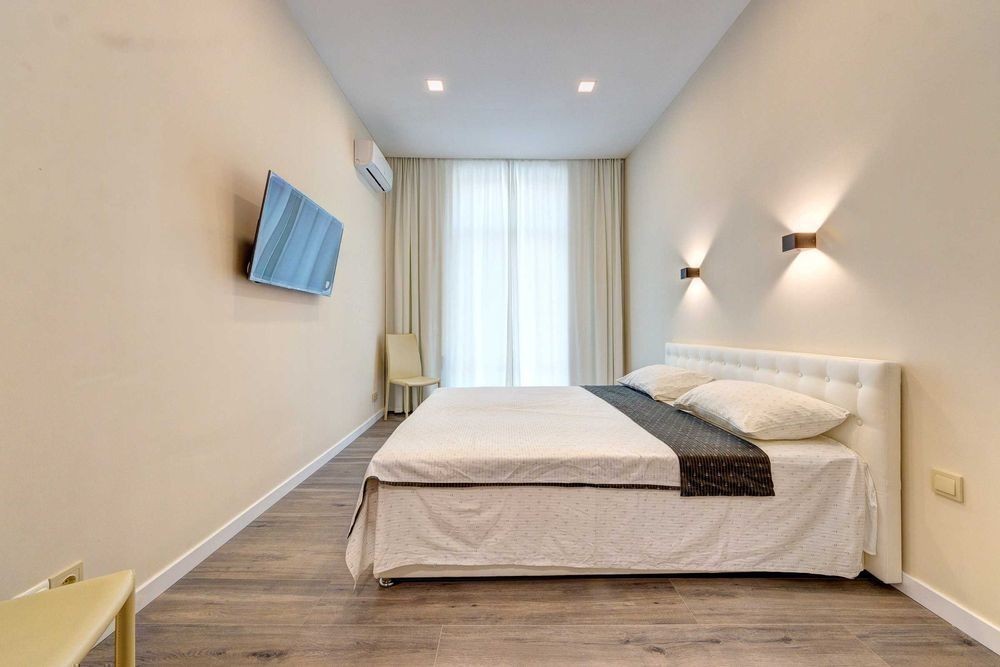 Роскошные апартаменты европейского уровня для комфортабельного проживания 6-ых человек. Расположены на улице Саксаганского, д. 25а Рядом есть две станции метро - Олимпийская и Льва Толстого (450 м), кинотеатр, планетарий (550 м), НСК «Олимпийский» (600 м), рестораны и бары - досуг на любой вкус. Из огромных окон открывается вид на живописную архитектуру района. Квартира оформлена в скандинавском стиле с обилием светлых оттенков. Она буквально наполнена воздухом и свободным пространством, здесь легко и приятно находиться. Дизайнерские светильники дают мягкий акцентный свет. В двух изолированных спальнях смогут разместиться 2 пары гостей. Предоставляются фен, утюг и необходимая посуда для комфортного пребывания. В одной из комнат расположена двухспальная кровать с ортопедическим матрасом. Напротив есть ТВ-зона и пара стульев с гнутыми спинками. Имеется выход на балкон. В другом помещении расположился раскладной мягкий диван и еще одна двуспальная кровать с мягким изголовьем, предусмотрена ТВ-зона. Здесь также есть дверь на балконную террасу. Кухня - компактная и отлично освещенная за счет большого окна. Минимализм в дизайне, в наличии холодильник, стиральная машина, варочная панель и электрочайник. Санузел - раздельный и это очень удобно, когда заселяется несколько человек. Установлена современная сантехника: унитаз, ванна, обширная тумба с умывальником и зеркало. Стоимость аренды квартиры в выходные дни уточняйте по номеру телефона. Для быстрого бронирования - звоните!