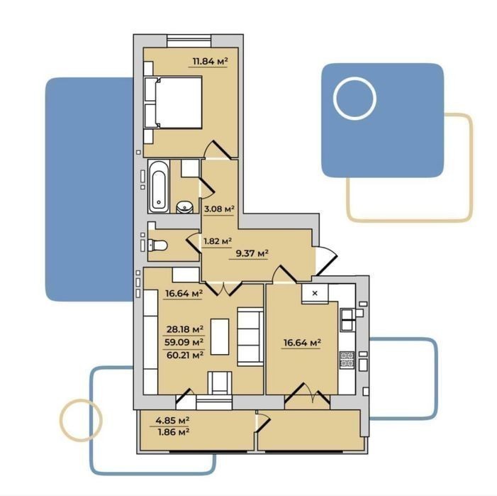 - 64 м²