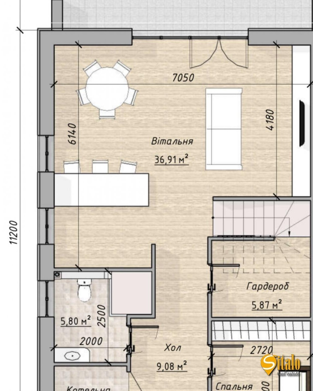 Продаётся уютный дуплекс с выходом на канал в популярном районе. Площадь дома составляет 142 кв. м тераса 37 кв. м. На первом этаже расположена кухня-столовая, терраса для отдыха, гардеробная, отдельная комната, санузел и котельная. Второй этаж оборудован четырьмя спальнями и двумя санузлами. Дом построен из качественного газоблока и утеплен минеральной ватой. Между этажами сделано крепкое ж/б перекрытие. Площадь участка по документам 5 соток, но практически 6 соток с учетом прибрежной территории. Все ограждено забором, есть распашные ворота. Удобное расположение всего в 4 км от метро "Славутич". Без комісії для покупця! Код объекта: 7584