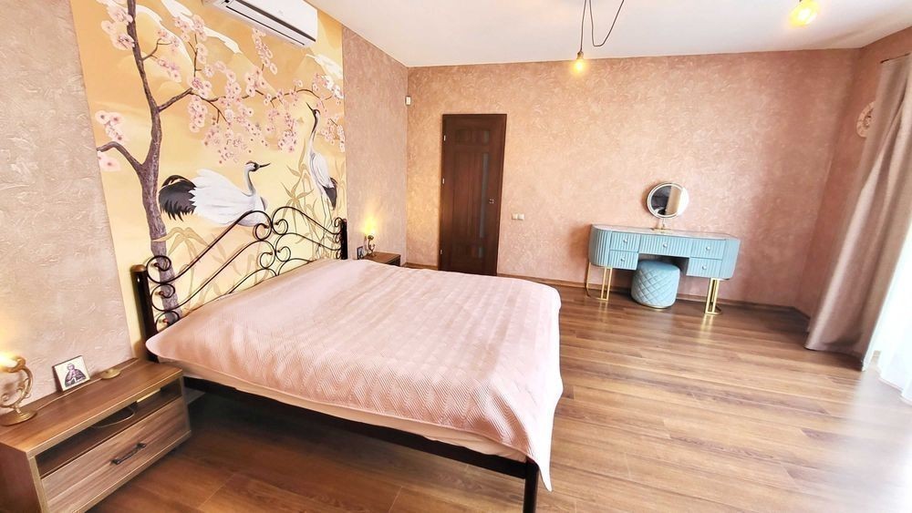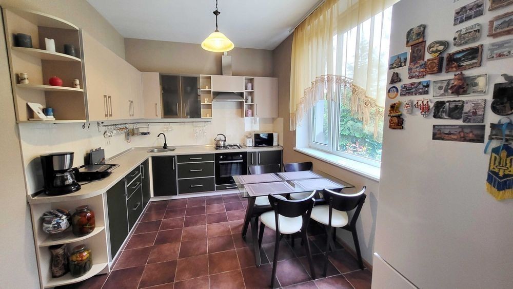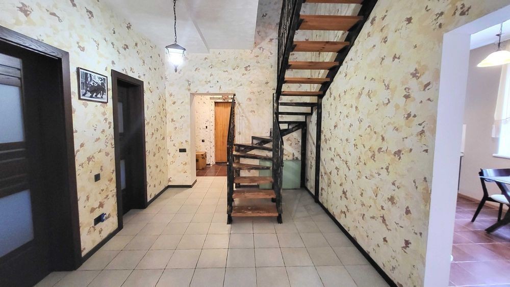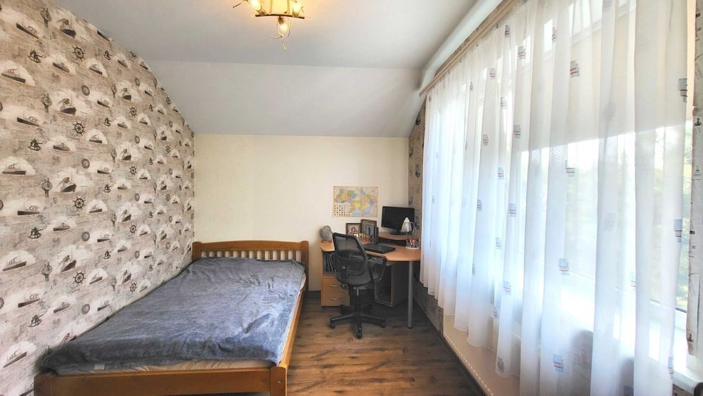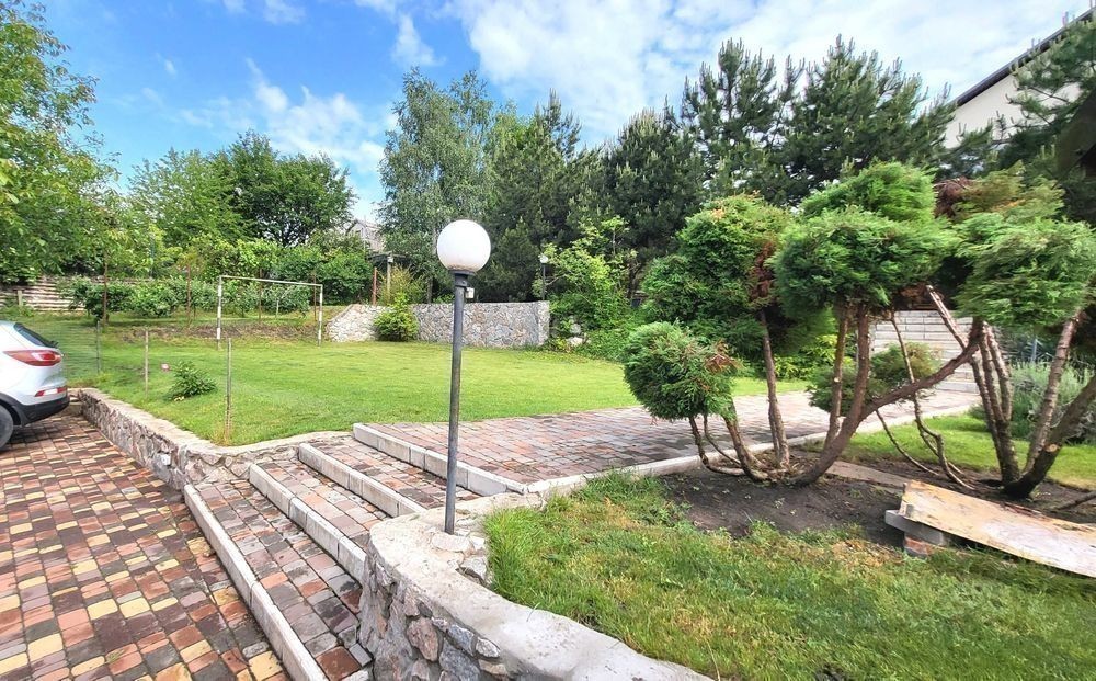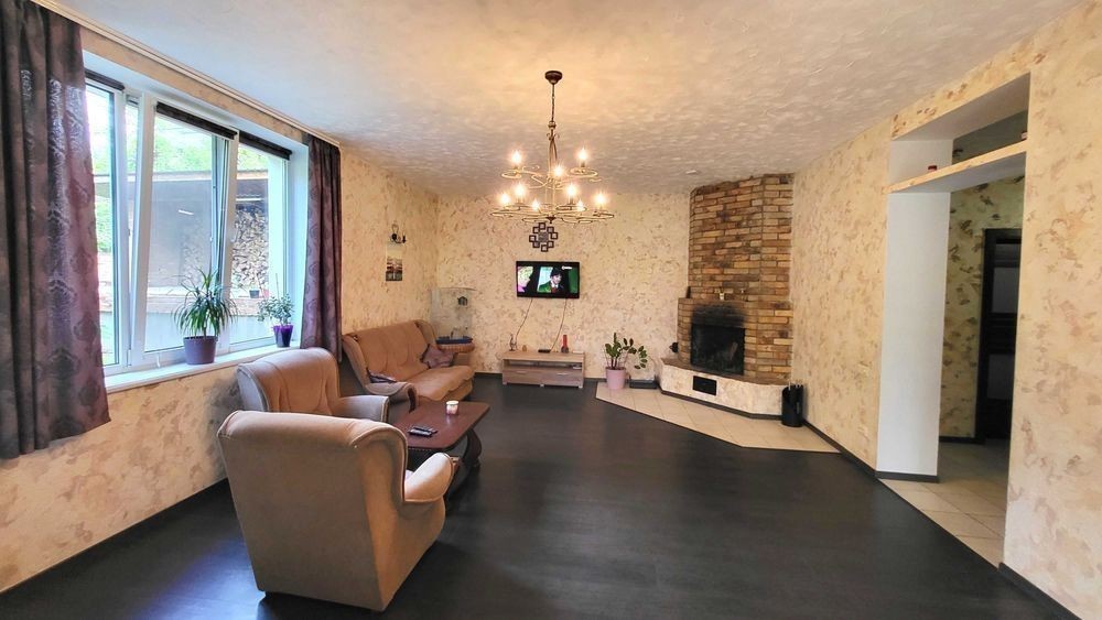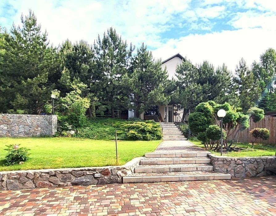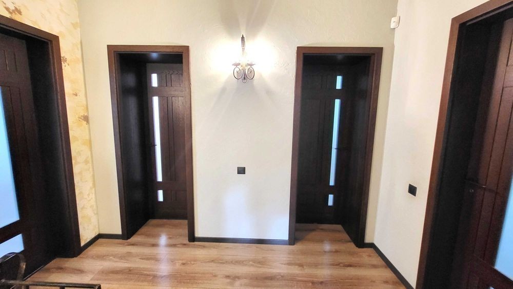 Продаж 2-х поверхового будинку (2015 р. ) з ВІТРАЖНИМИ вікнами, на ЗАКРИТІЙ території з охороною, з 45 різних ХВОЙНИХ насаджень (ліс), вул. Сонячна, Дніпровського району. В будівництві використовували дорогі і яікісні оздоблювані матеріали. Фундамент = 1 м, моноліт ж/бетон. Покрівля металочерепиця, утеплена 30 см мін. ватой. Опалення будинку: твердопалевним котлом, електричним котлом (напруга 380 Вт, бойлєр на 200 л), на пешому поверху будинка є теплі водяні підлоги, на 2-х поверхах - радіатори (автономна система перемикання). Лічильник на електроенергію. Свердловина = 32 м. Будинок збудований з двох поверхів, кожна кімната з чудовим видом на хвойні насадження. Є можливість побудувати мансардний поверх (Н=2.50 м та площа = 40 кв. м). Перший поверх: тераса, вітальня, кухня, камін, гостьовий сан. вузол, коридор, бойлєрная, сходи. Другий поверх: сходи, три спальні (в господарській спальні є розширений балкон), госп. санвузол, вбиральня, коридор. В будинку залишаються: мебель та техніка. На території знаходяться: дім, тераса, госп. прибудови, кап. літній душ та вбиральня, зливна яма, вольєр, дровник на 20 кубів, 2 альтанки, котельня, навіс, підбірна стінка, барбекю, мангал, хвойні насадження, яблоні, вишні, слива, виноград, огород, автоматичний полив, вуличне освітлення, спортивний та дитячий майданчики, площа для басейну, паркувальне місто для 4 машин, паркан, ворота, замощення, відеоспостереження, система сигналізації. Власник один. Прописаних немає.