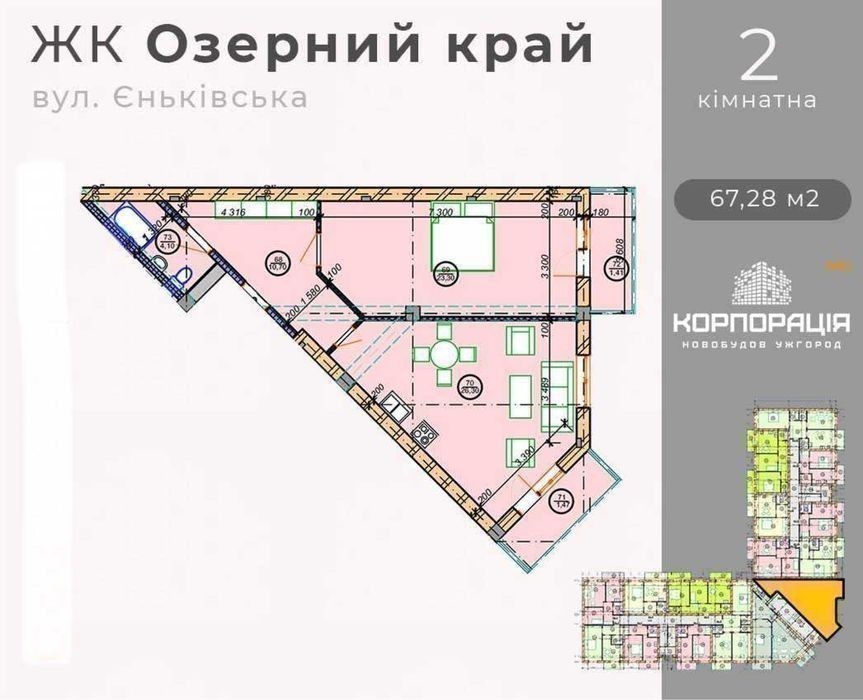 Продається чудова квартира на 3 поверсі в новій черзі житлового комплексу «Озерний край», який находиться за адресою м. Ужгород, вул. Єньковська, 33. Перевагами даного будинку є якісна і надійна забудова. Несучі стіни, з цегли 38 см. Утеплення зовнішнє (мінвата). Чорновий стан ремонту. Продумане планування та затишні балкони в квартирі. Газове індивідуальне опалення (котел, батареї). Розведення світла, води, каналізації. Сучасні підʼїзди, внутрішній двір, паркінг. Розвинений район, пору.е. ологічні локації, Парк, ТЦ, навчальні заклади. До центру міста 5-7 хвилин на авто. Нова асфальтова дорога до будинку. Обʼєкт перебуває на етапі здачі в експлуатацію. Продаж по переуступці. Ціна 50000€ без торгу. Деталі за телефоном +38********21