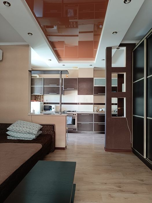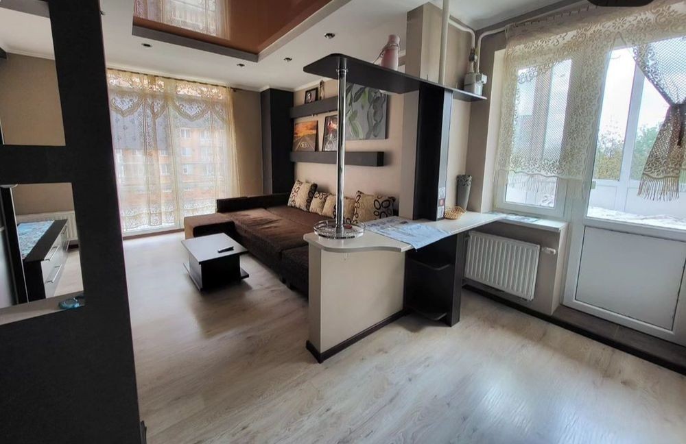Однокімнатна квартира студія розташована в ЖК, за адресою вулиця Рівнеська 5а, ідеальне розташування квартири, поруч Лікарня " базисмед, Макдональдс, ТЦ Майдан, парк Жовтневий, Спорт клуб, Сільпо до центру міста 10 хв маршруткою, Зупинка громадського транспорту В квартирі є все необхідне : Постіль, рушники, посуд, столові прибори, побутова техніка 2 спальних місць Є два балкони, один відкритого типу, інший закритого, гарний вид на ЖК і місто Квартира світла, затишна, зручна з хорошим ремонтом Для відряджень надаємо звітні документи