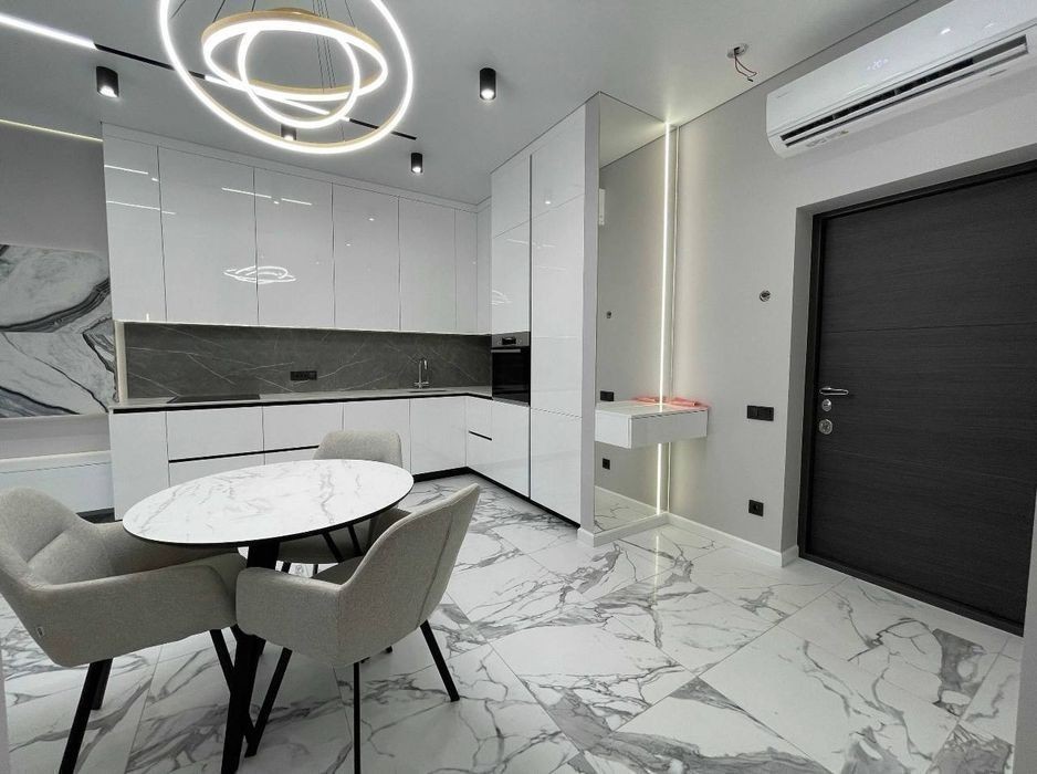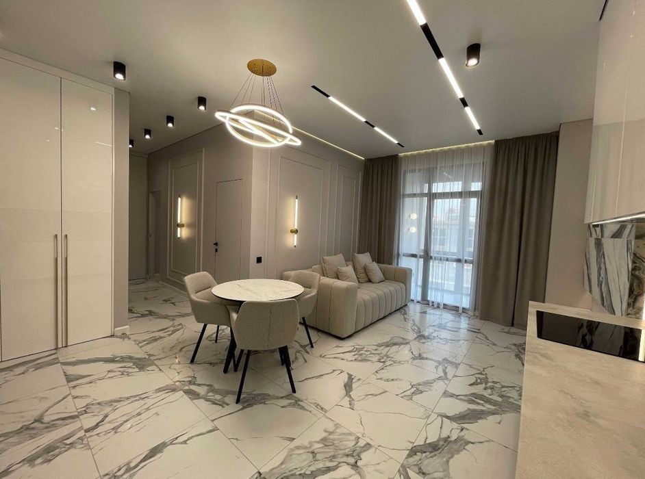 Продажа 3 комнатной квартиры ЖК Женева. 7 секция. Свежий дизайнерский ремонт из премиум материалов, кварцевая кухонная столешница и т. д. 3 этаж 12 этажного дома Общая площадь 65 кв. м. Планировка: кухня-гостиная, 2 спальни, 2 санузла, балкон. Автономное газовое отопление. Зона кафеля с теплыми полами. Продажа с мебелью и техникой. Стоимость квартиры 135 000 $.