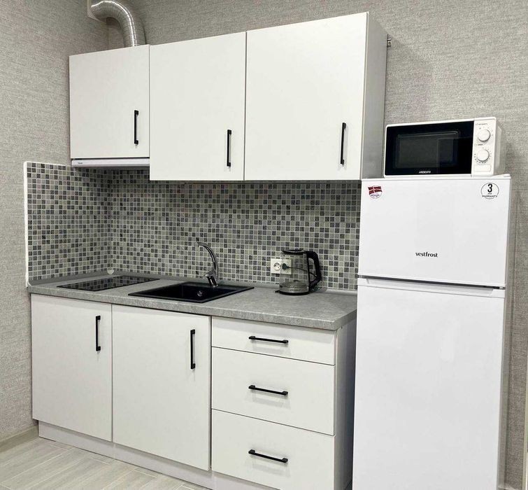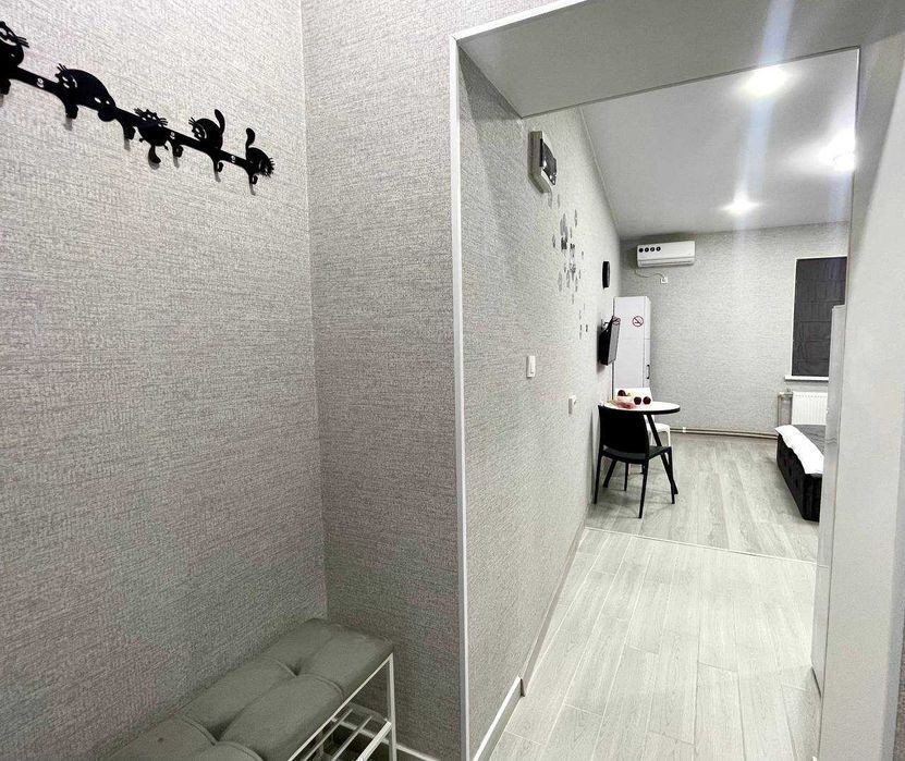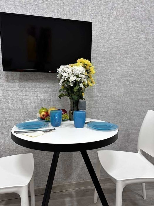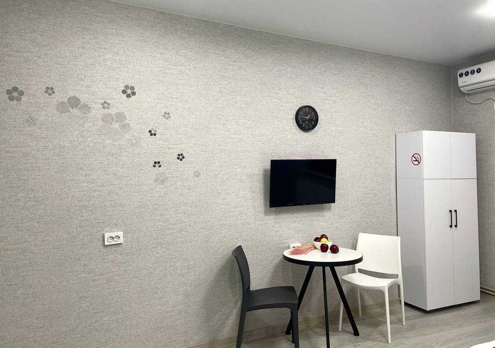 Студія в центрі міста. Поряд центральна набережна міста, парк, ТРЦ Нікольський Апартаменти виконані в сучасному європейському стилі. Зручна кухня з технікою та посудом (мікрохвильова піч, холодильник, електрична плита). Комфортний простір для відпочинку.