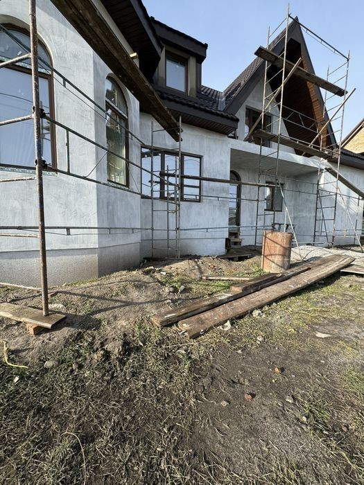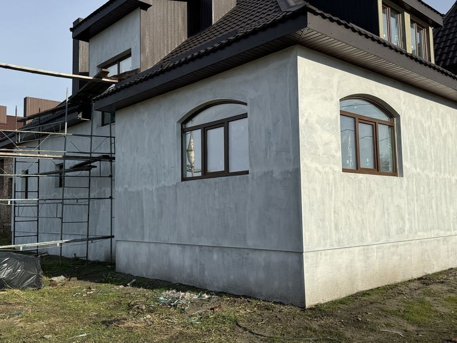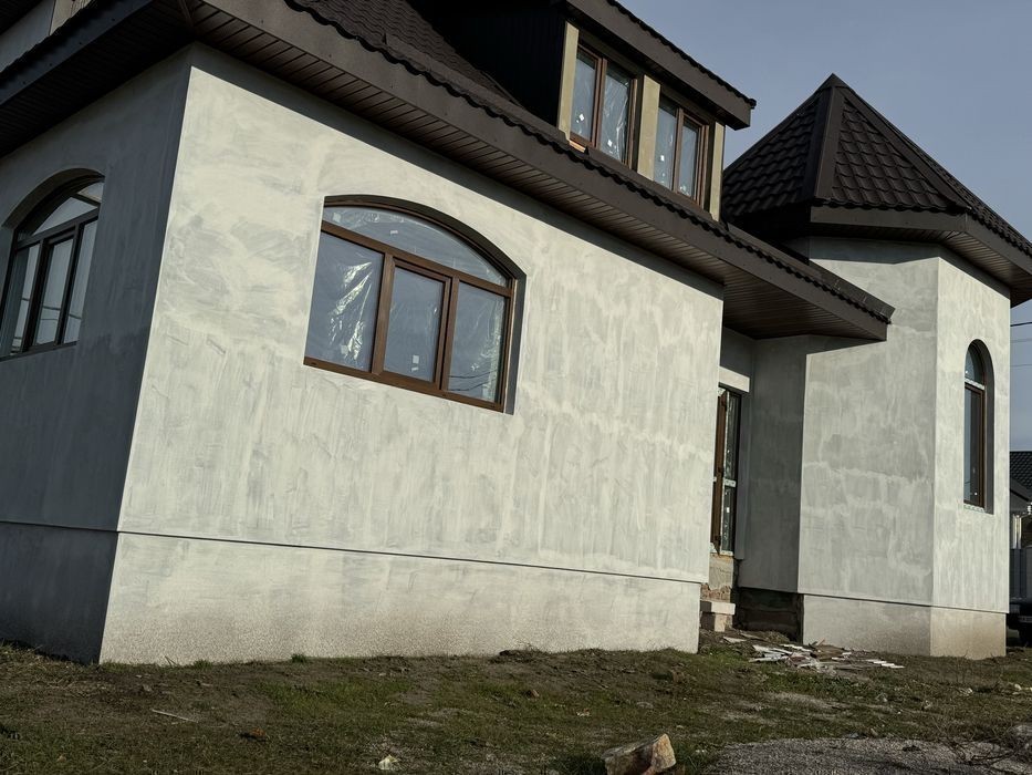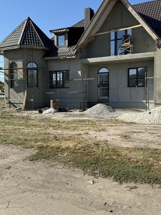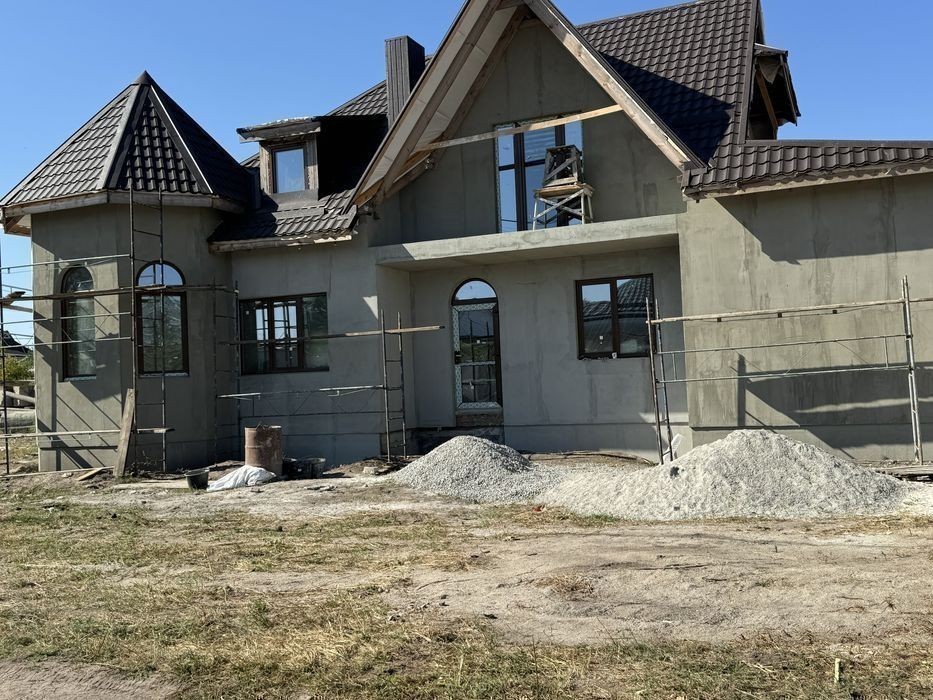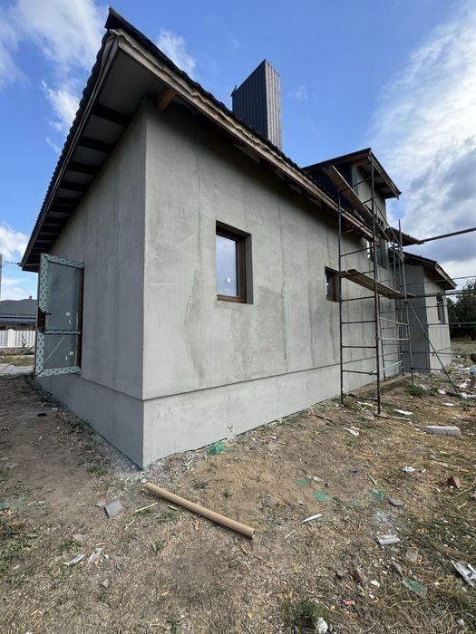 Будинок повністю цегляний Перекриття плити, дах мет. Черепиця Стіни Утеплені пінопласт та штукатурка Вікна ламіновані пластик Енергозберігаючий профіль, 2 камерні склопакети. Підведені всі комунікації. Розведені по будинку, каналізація та водопостачання в 2 санвузли та кухня. Електрика по кімнатах Каналізація скептик. Три кімнати, зал. кухня столова Два санвузли На 2 авто Гараж. Деталі по телефону.