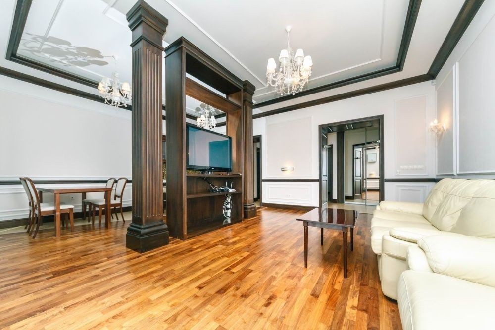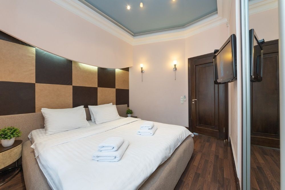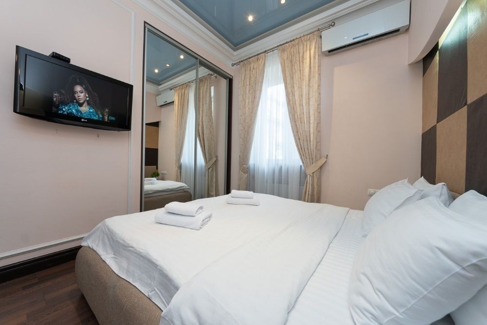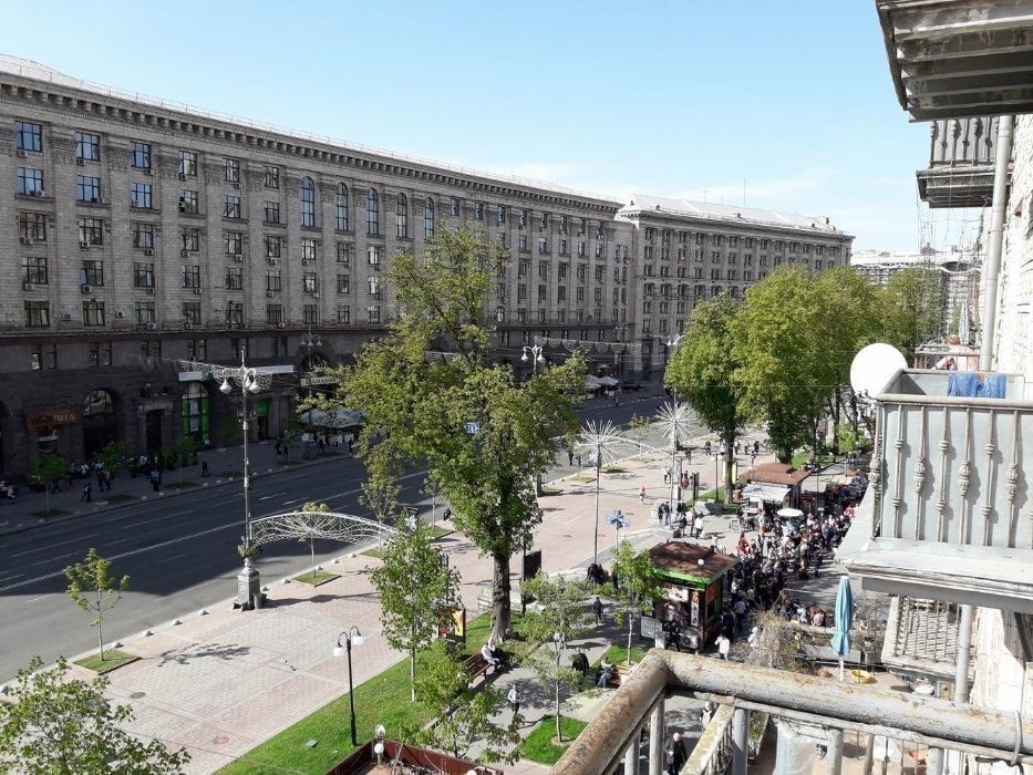Трикімнатна квартира в центрі Києва за адресою Хрещатик 17,. Велика вітальня з балконом на Хрещатик У спальнях двоспальне ліжко та по шафі купе. Вікна спалень виходять у тихий двір У вітальні великий розкладний диван, ТБ. У кожній спальні є телевізор та кондиціонер У санвузлі ванна, біде, санвузол суміщений Є інтернет Wi-Fi. Надаємо лазневі та постільні речі. 5 поверх, ліфт Якщо бронювання, за неділю і більше, мінімальна кількість ночей 4-5, Для святкувань квартира не здається.