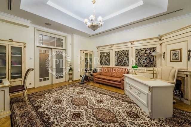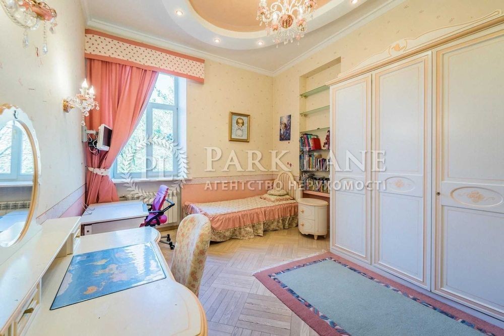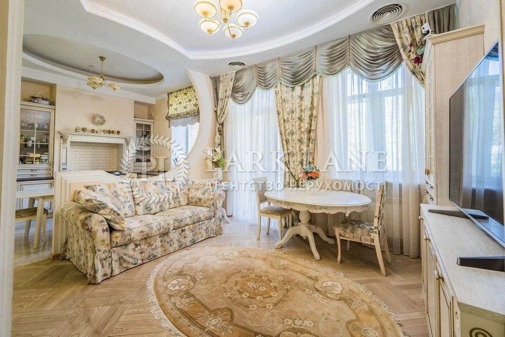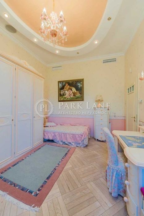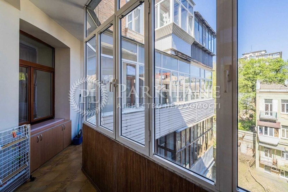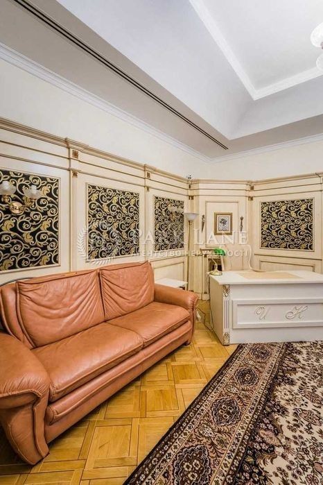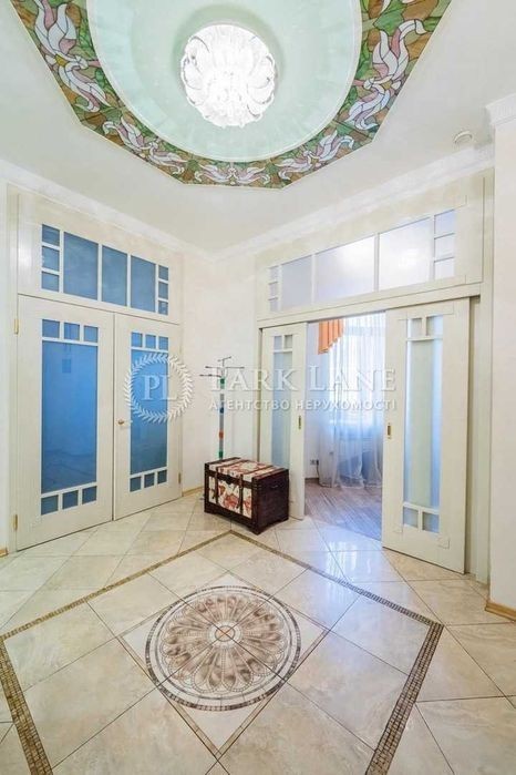 Унікальна простора квартира за дві хвилини від Майдану Незалежності. Три спальні, кабінет, кухня-вітальня, дві гардеробної, два санвузли, два балкони, технічна кімната. ВІкна виходять у два закритих дворики між будинками. Є власне паркомісце у дворі. Виконаний якісний дизайнерський ремонт 10 років тому. Стеля 3,59 м. В стелю вмонтовано систему кондиціювання та вентиляції. Телевізори є в кожній кімнаті. У вітальні стеля декорована вітражами. В будинку два ліфта, є консьєрж, відеонагляд. Мала Житомирська, 5. Дореволюційний будинок після реконструкції, залізобетонні перекриття. Консьєрж, охорона.