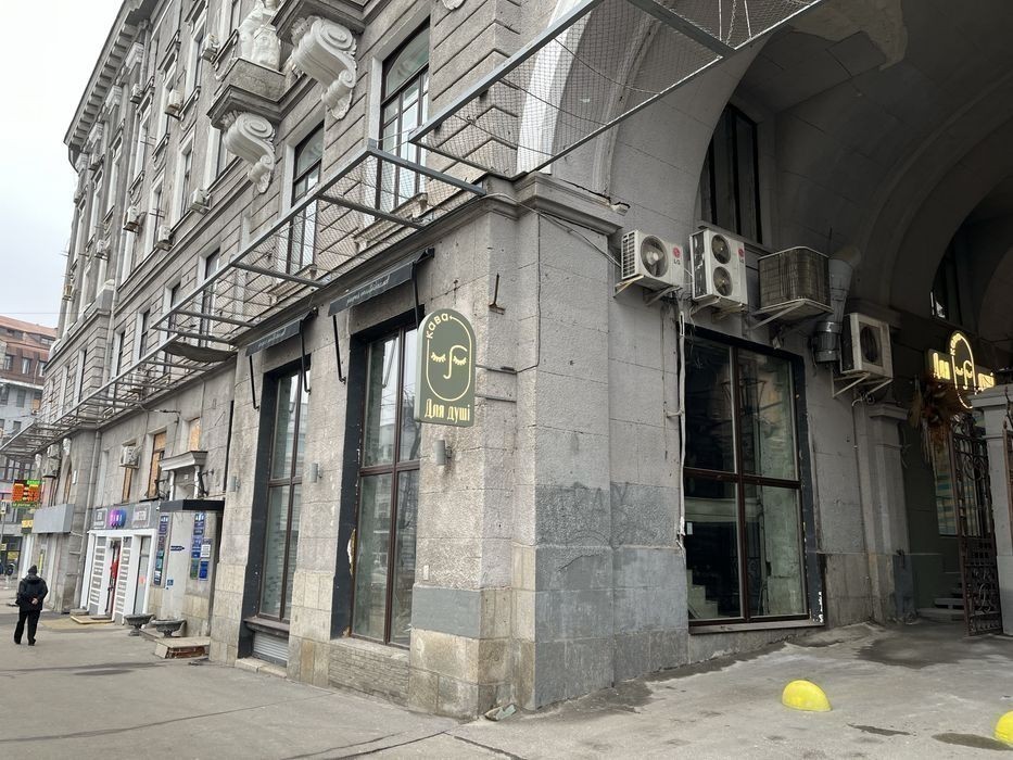 -Площа: 173 м2 (1 поверх - 103 м2, антресоль - 70 м2). -Адреса: майдан Конституції, 1 -Поверх: 1/7; - Електрика: 30 кВт/год (380 В). Опис: 1 вхідна група, 'червона лінія', балконна споруда всередині приміщення (антресоль), великий підвал, великі вікна, наявність витяжки, запасний вихід. Комунікації: центральне опалення, водопостачання, водовідведення централізоване, електрика, санвузли, високі стелі. Центр міста, паркування. Місцезнаходження: 'червона лінія', поряд знаходиться ТЦ 'Нікольський', 2 хв. Гіперактивний пішохідний та автомобільний трафік, місце для рекламних носіїв. Компанія: АН Європейське
