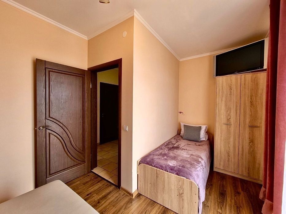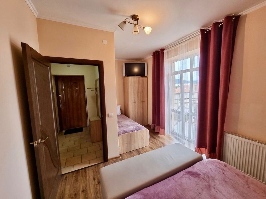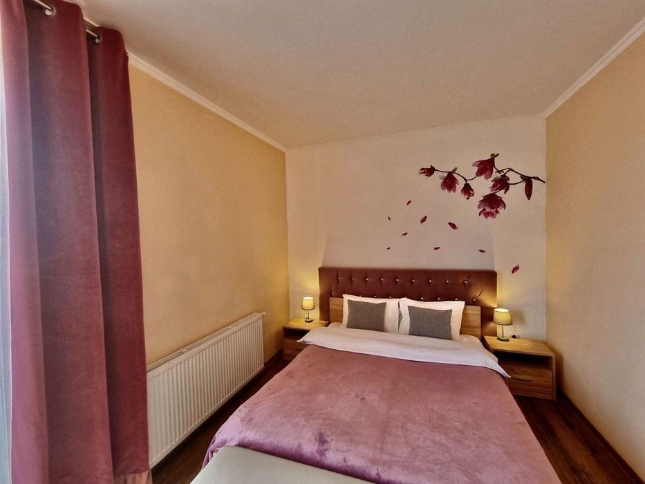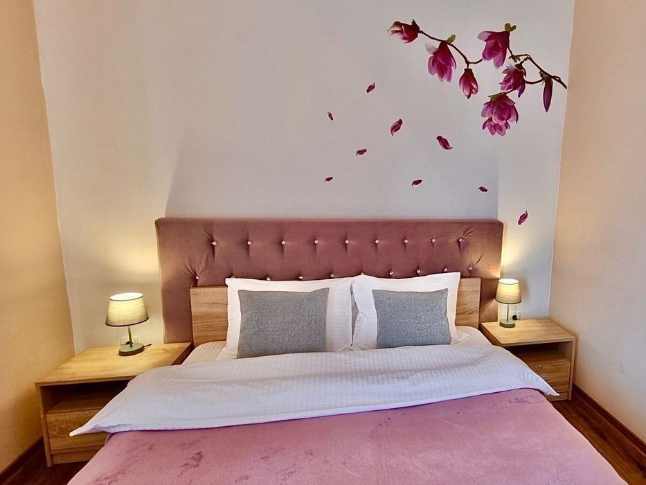 К вашим услугам квартира-апартамент «Магнолия»!. Она очень светлая, стильная с продуманными цветовыми акцентами которые придают уют и тепло. А также балкон с видом на горы. Главное преимущество апартаментов- их расположение, в деловом и культурном центре Мукачева. Как и другие наши квартиры находятся рядом с главными достопримечательностями города, торговыми бизнес центрами, кафе, ресторанами. Новинкой Мукачева этого сизона стало открытие термальных бассейнов и аквапарка «Карпатия». Все эти развлекательные места в пешой доступности. Квартира рассчитана на 1-3 гостей, удобно остановиться в наших квартирах вместе с родственниками или коллегами: в одном доме у нас несколько квартир, некоторые из них на одной лестничной площадке. Лифт всегда работает. Окна выходят в тихий двор поэтому шум с улиц не будет причинять дискомфорт. Для вашего удобства широкая двуспальная кровать и одно отдельное спальное место. +кресло кровать в кухне. Специально для тех кто любит питаться домашней едой, вас ждут: плита, микроволновка, чайник, холодильник, кастрюли, разделочная доска, сковорода, набор посуды, ножи, тёрка. Соль, сахар и растительное масло тоже есть. Есть всё необходимое для ухода за одеждой: стиральная машина, сушилка, вешалки, щётка, губка для обуви, гладильная доска, утюг. Телевизор, кабельное телевидение и wi-Fi конечно тоже есть. Средства индивидуальной гигиены: полотенца, жидкое мыло, дезинфицирующе средства для рук и поверхностей. Вы можете быть на 100% уверенны в том, что в квартире будет безупречно чисто, уборка проводится согласно розработаному стандарту ВОЗ. Более того для уборки квартир мы всегда пользуемся ЭКО-средствами (бережём ваше здоровье и окружающую среду). Под вечеринки и шумные мероприятия квартиру не сдаём. У нас не курят. Заселение по паспорту. Оплата наличные, карта