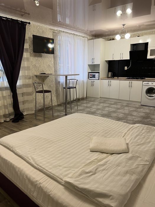 Подобова оренда апаратаментів у центрі міста Суми Вулиця Харківська Новобудова, перший поверх Можливе розміщення з невеликими тваринами, але після узгодження, можлива додаткова оплата. Новий сучасний ремонт, вся побутова техніка, необхідний посуд, постіль, рушники. Ціна може бути змінною у святкові та вихідні дні!