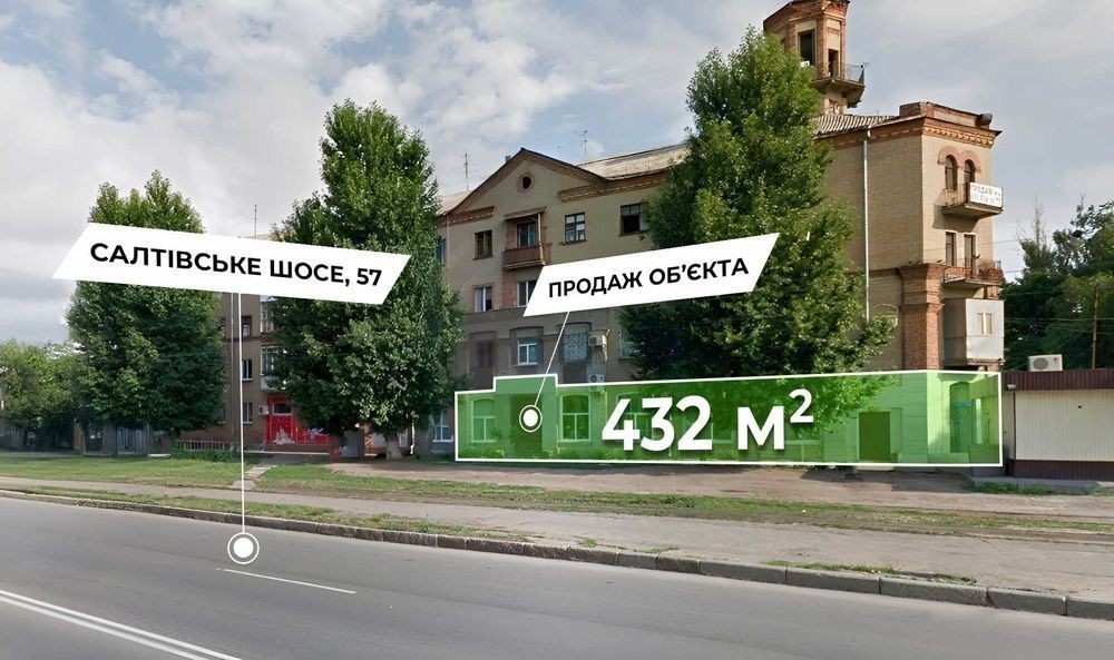 Продаж приміщення вільного призначення 432м2 Адреса: м. Харків, Салтівске шосе 57 Технічні характеристики: червона лінія, три окремі вхідні групи, два основних зали S - 165м2 висота стелі 4,3м та S - 150м2 висота стелі 7,05м, антресоль 45м2, санвузол, вітринні вікна, бомбосховище, можливий поділ на кілька приміщень Ремонт універсальний Комунікації: Р-14кВт (380), опалення - централізоване, вода та водовідведення централізоване Компанія АН Європейське