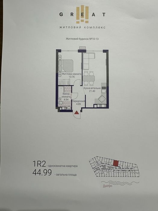 1к. квартира 45м2 на 9 пов. в (тринадцятому зданому будинку жк Грейт, Great. ) вул. Причальна 10. Будинок зданий, можна заходити на ремонт. Ключі отримав. Відео за потреби. (1600$м2)