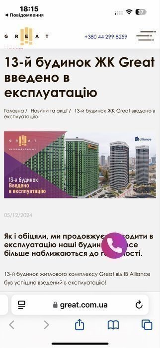 Жк Грейт, жк Great 1к. 45м2 квартира від власника без комісії.