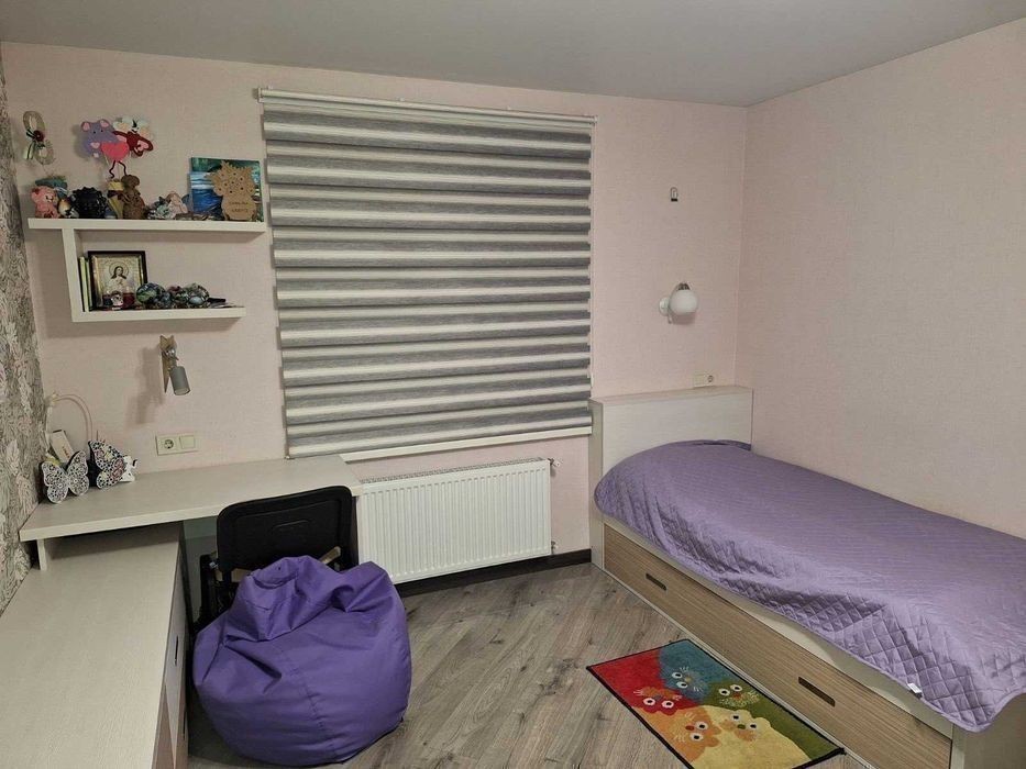Ця квартира вирізняється сучасним дизайном і стриманою, спокійною гамою кольорів. Квартира на дві сторони і має два утеплених балкони та теплу підлогу. Кухня облаштована в єдиному концепті з фурнітурою Blum і зону з фактурними фасадами шаф. Вбудована посудомийна машина та духова шафа, а також чорна мийка створюють завершений вигляд. Фартух виконаний із плитки з імітацією дерева та дрібною мозаїкою з боків, що візуально розширює простір. Обідня зона представлена компактним столом і чотирма стільцями. Поруч розміщено телевізор, що дозволяє поєднувати приготування їжі з переглядом улюблених передач. Світлі підлоги та стіни з легким візерунком додають приміщенню простору і затишку, а великі вікна впускають достатньо природного світла. Загалом інтерʼєр квартири продуманий до дрібниць, створюючи приємну атмосферу для щоденного відпочинку та комфорту. Ванна кімната оздоблена плиткою в теплих, природних відтінках, що імітують деревину. Душова кабіна стильна та забезпечу.е. ономію простору. Вертикальна мозаїка навколо душу додає оригінальності. Біла тумба з умивальником та високі шафки створюють достатньо місця для зберігання речей. Дитяча кімната виконана у світлих тонах. Односпальне ліжко з вбудованими шухлядами є водночас зручним і функціональним. Робоча зона з полицями та столом ідеально підходить для навчання. Тематичні шпалери та невеликі декоративні елементи додають кімнаті індивідуальності та простору, зі спокійною колірною гамою, що сприяє відпочинку. У спальні велике двоспальне ліжко з тумбами по обидва боки забезпечує комфортний сон і додаткове місце для дрібниць. На протилежній стіні є зона для телевізора, тож можна насолоджуватися улюбленими передачами, не виходячи з кімнати. Стіни оздоблені ніжним геометричним візерунком, а підлога із сірої ламінованої дошки вдало доповнює загальний інтерʼєр. Двір затишний та спокійний. Також дана пропозиція має змогу заряджати своє улюблене авто. Чудова інфраструктура для комфортного життя. Телефонуйте!. 113421