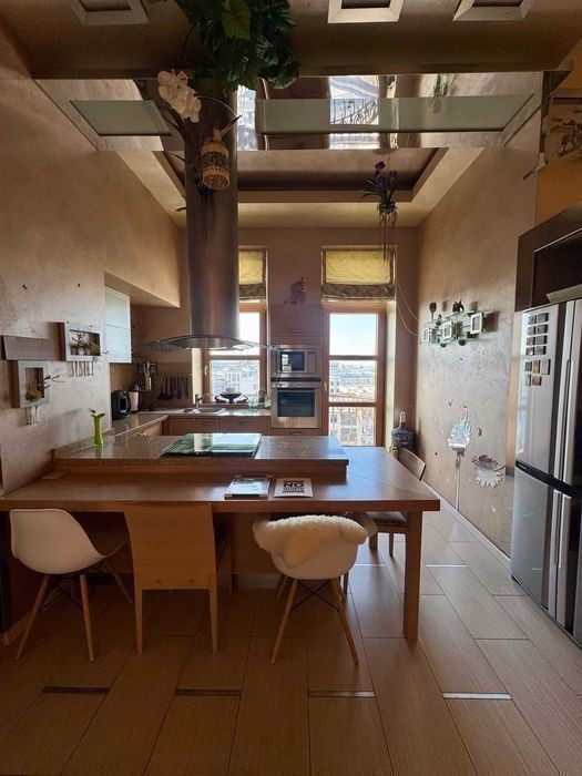 Аренда 4 комнатной видовой квартиры на ул. Шелковичная 22, на 7 этаже 7 этажного дома. Общая площадь квартиры 200 м2 Высота потолков 4 метра Мастер-спальня со своей ванной и гардеробом Две детские Детский с/у Открытое пространство гостинная-кухня-коридор Гостевой с/у Бойлер Кондиционеры 3 балкона Подземный паркинг+паркоместо на улице под шлагбаумом, во дворе бомбоубежище.