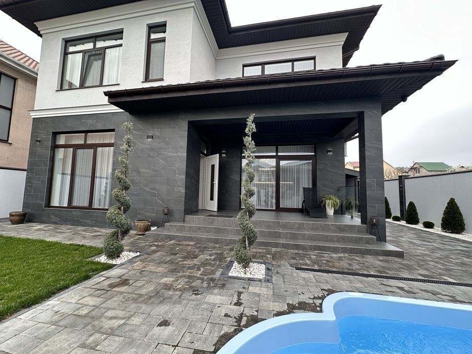 В продаже классный современный дом с авторским ремонтом 6 соток Первый этаж : холл, кухня- гостиная, гостевая спальня, санузел, гардеробная, тех. помещение, сауна Второй этаж : 3 просторных квадратных спальни, санузел Бассейн Зона барбекю Крытое место под 2-3 авто + место под 2 авто перед домом Есть видеообзор, звоните ! )