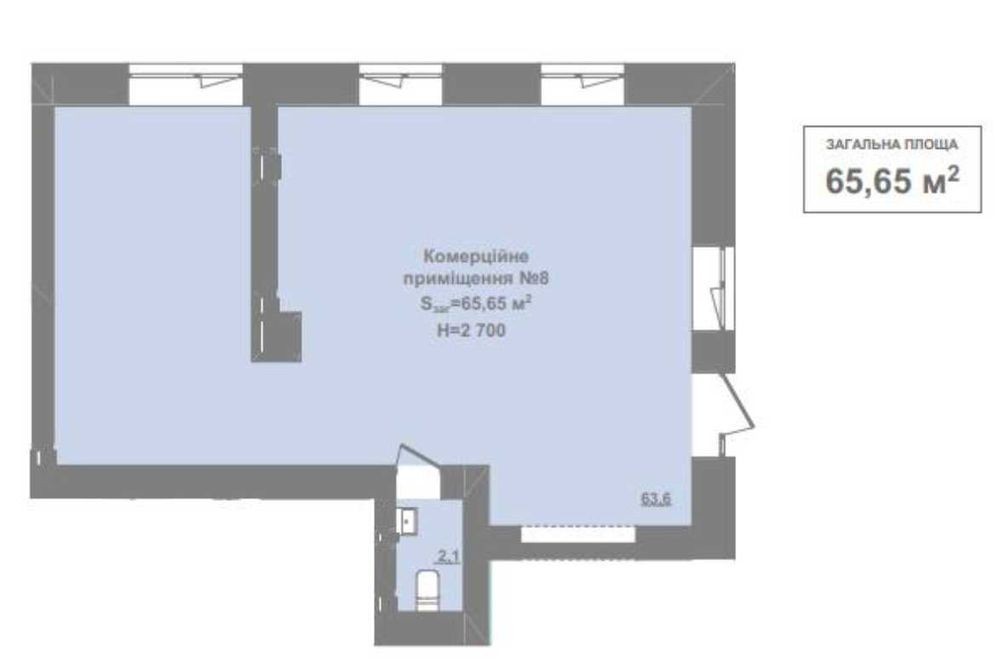 Оренда комерційного приміщення 65,65 кв. м. м. Пустомити