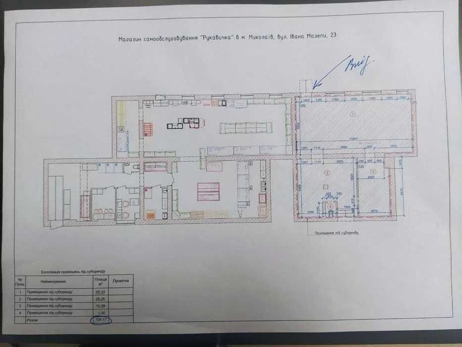 Здається в оренду комерційне приміщення площею 11,88 м. кв. Приміщення Супермаркету «РУКАВИЧКА» з окремим входом (1-й поверх) у м. Миколаїв вул. Мазепи, 23. Ціна 500 грн/ за 1м. кв. з ПДВ. Приміщення здається в оренду від Власника