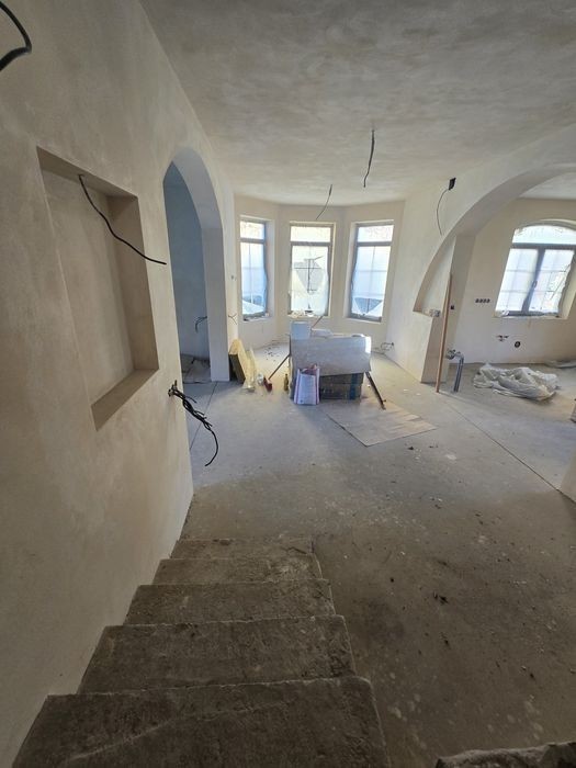 Продаж добротного будинку в Минаї. Будинок поділений на 2 частини. Перша частина: 1 поверховий гостьовий, який складається з кімнати, кухні, санвузла, кладової, з виходом на терасу. Друга частина: 1 поверх: прихожа, велика вітальня з переходом в кухню, кладова, ванна, туалет, вихід на терасу. 2 поверх: 4 кімнати (одна з гардеробною), хол (можна відділити і зробити кабінет), санвузол, кладова, підсобні приміщення. Опалення передбачене комбіноване, є 2 котли газовий та елктро. Також можна доєднати твердопаливний. Заведено 3 фази, по всьому будинку теплі поли, є радіатори для всього будинку. У власності більше 3 років тому податок не високий. Деталі за телефоном