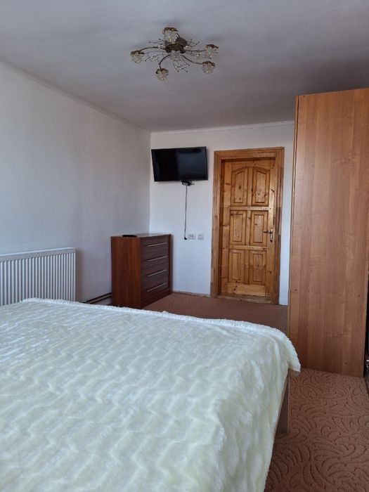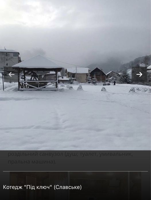 Розташування: У селищі Славське, 3 км від центру та вокзалу. До гірськолижних витягів туристичного комплексу "Захар Беркут" - 3 км, до витягів на горах Тростян та Погар - 5 км. Зручний під'їзд - грунтова дорога. Опис: Одноповерховий будинок на 8 місць. Біля будинку є альтанка, мангал, літній басейн. У будинку - хол; кухня (газова плита, мікрохвильова піч, холодильник, електрочайник, посуд, мийка); 4 двомісні кімнати (у кожній - двоспальне ліжко, шафа для одягу, телевізор); роздільний санвузол (душ; туалет, умивальник, пральна машина). Опалення: автономне водяне. Водопостачання: холодна та гаряча вода постійно. Харчування: Можна самостійно готувати їжу на кухні. До найближчого кафе та магазину - 50 м. Сервіс, включений у вартість: Паркінг, виклик таксі. Супутникове телебачення. Інтернет Wi-Fi. Прибирання кімнат - за потребою, зміна постелі - 1 раз на 5 днів. Можна привозити домашніх тварин. Сервіс за додаткову оплату: Транспортні послуги. Прання та прасування одягу. Поруч є сауна. Спорт, розваги: Екскурсії - за домовленістю. Походи в гори, збирання грибів та ягід. Катання на конях, взимку - на санях. Мобільне покриття: Київстар МТС Ціни з особи за добу: За домовленістю Знижки - за домовленістю. Передоплата обов'язкова. Як доїхати: Громадським транспортом До станції Славcьке будь-яким поїздом напрямку на Ужгород. Далі - на таксі або попередньо домовитись з господарями про трансфер. Автомобілем Трасою Київ-Львів-Чоп (М-06), за Сколе повернути на Славське. Їхати постійно головною дорогою, у центрі Славського повернути за вказівником на Волосянку. Від повороту їхати близько 2,1 км, садиба знаходиться ліворуч від дороги.