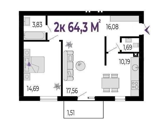 - 69 м²