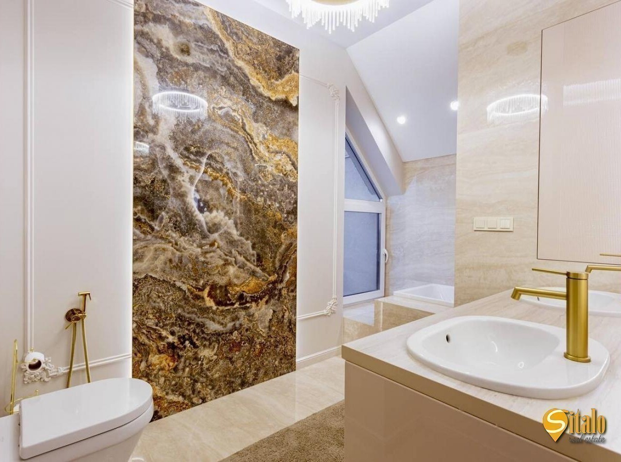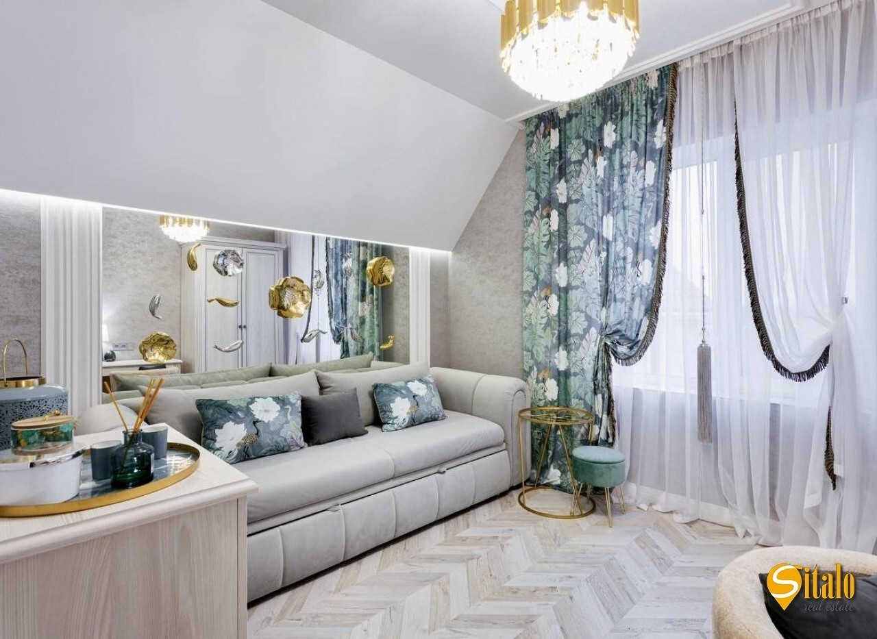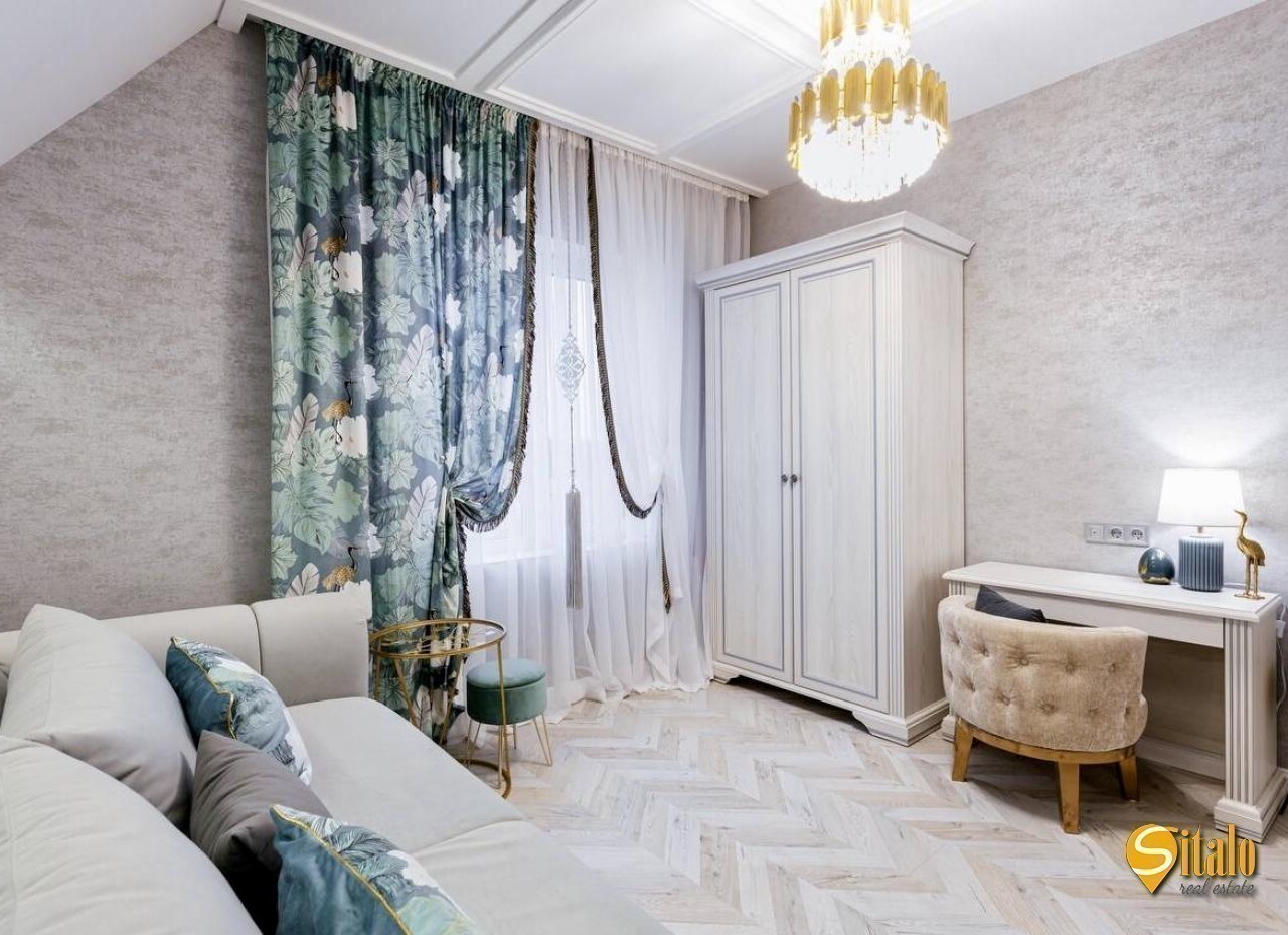 Продаж будинку з дизайнерським ремонтом в Осокорках. Просторий сучасний будинок із новим авторським ремонтом, розташований у престижному дачному кооперативі - найвища точка району, асфальтований під'їзд, до метро Славутич 5 км. Ділянка - 6 соток, будинок двоповерховий з великою терасою (27 кв. м. ), кухнею-студією (44 кв. м. ), санвузлом (8 кв. м. на 2 поверсі), 4 кімнатами, двома гардеробними, балконом та просторою ванною з панорамним вікном. У будинку: кондиціонери, тепла підлога, бойлери, сучасна котельня, три фази електропостачання (10 кВт), септик, свердловина, система фільтрації води. В оздобленні використано дорогі матеріали - натуральний камінь, декоративні панелі, золоті акценти. Ділянка рівна, сусіди - нові сучасні будинки, до озера Мартишів - 400 м. Ідеальний варіант для тих, хто шукає стильне житло у тихому районі з хорошою транспортною доступністю. Код об'єкта 16041