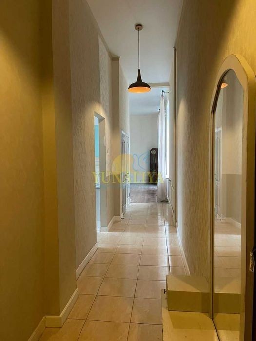 Без комісійних! Продаж 2-кімнатної квартири, розташованої в історичному «Царському» будинку з ліфтом на вул. Богдана Хмельницького, 10 в унікальному Центрі Шевченківського району. Будинок є пам'яткою архітектури та історії 1897 р. відомий як «Мережевний будинок Брадтмана», прибутковий. Споруду звели за проектом архітектора Едуарда Брадтмана. Архітектурний стиль - архітектура модерну і цегляний стиль. Будинок після капітальної реконструкції 1979-80 рр. 4 поверх 5-поверхового будинку з ліфтом. Перекриття по всій квартирі комбіновані з особливим зміцненням. А саме: П-подібні залізо-бетонні короби, на які покладені дерев'яні лаги, по поверхні. На кожному поверсі вентиляційна система для перекриттів. Цегляні стіни. Чинний ліфт. Архітектурно-планувальне рішення: квартира 2-х стороння з відкритими: балконом (3,3 м²) та лоджією (5 м²); суміжно-роздільними: вітальнею та спальнею; великим красивим коридором з подвійним верхнім освітленням, що веде також у комфортну кухню-їдальню, що має вихід на лоджію, а також у ванну та окремий санвузол. У санвузлі «Система Інсталяції» - унітаз підвісний; гігієнічний душ. Вітальня має вихід на балкон. Лінійні параметри: 84,7/52,5/9,7; висота стель 4,2 м. Квартира укомплектована корпусними та надзвичайно м'якими меблями зі шкіряною смарагдовою оббивкою. У затишній, комфортабельній вітальні розташований телевізор "SONY" - Smart TV. Тут же, у вітальні рідкісне, з історичної Німеччини, фортепіано «Boger&Sohn, Berlin S.W.», а також старовинний підлоговий годинник з маятником у дерев'яному корпусі. Величезна спальня з 2-х спальним ліжком і матрацом, тумбами, шафою для одягу, а також з сегментом кабінету з письмовим столом і кріслом, що стоять навпроти величезного вікна, що виходить на лоджію. У спальні є ніша для встановлення шафи-купе. За рахунок великих площ, рідкісної висоти стель, величезних вікон, що дають багато денного та сонячного світла, свіжого повітря створюється особливий клімат свободи, творчості, гармонії. Кухня-їдальня з особливо радісним тематичним рішенням дизайнера: круглий стіл, зручні стільці навколо нього, загадковий орнамент на підлозі, люстра у вигляді свічок, високі двері на лоджію з підсвічуванням. Дизайнерський ремонт виконаний у сучасному європейському стилі у 2018 році. Світлі, кремові тони внутрішнього інтер'єру з невеликим контрастом у ванній та санвузлі утворюють колірну рівновагу. У вітальні та спальні - підлога ламінована і має високі стандарти якості, витримує будь-які навантаження на поверхню! У кухні, санвузлі, ванній, коридорі - плитка. Стіни - шпалери. Побутова техніка, кухонне обладнання, сантехнічне: плита газова, 4-х конфоркова «ZANUSSI», витяжка «VENTO», холодильник «BOSCH», пральна машина «LG», кондиціонер «Smart Way». На вимогу можна встановити посудомийну машину та духову шафу до газової плити. Інженерна інфраструктура: Інтернет, WI-FI, провайдер - MIIT; опалення, гаряча вода централізована; бойлер продуктивністю 100 л. Контрольно-вимірювальне обладнання: встановлені лічильники витрати: холодної, гарячої води, електроенергії. Вікна - склопакети. Тамбур на 2 квартири (у другій квартирі ніхто, тимчасово, не живе), це гарантує тишу, спокій та відокремленість. Парадне чисте, у хорошому стані, обладнане Домофоном. Планувальною особливістю будинку є 2 входи в парадне: з 1-го поверху та з 2-го поверху за рахунок прив'язки до ландшафту.