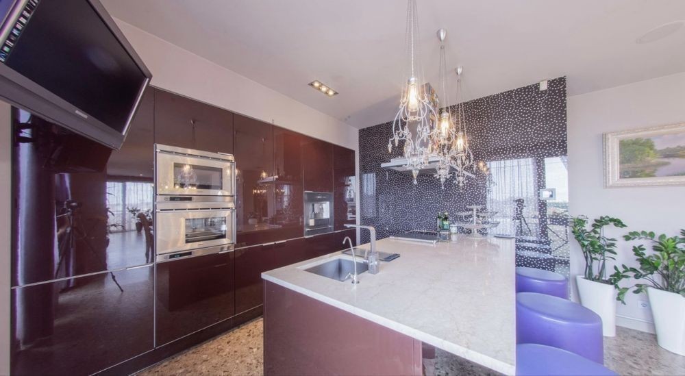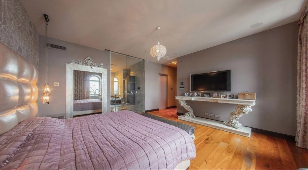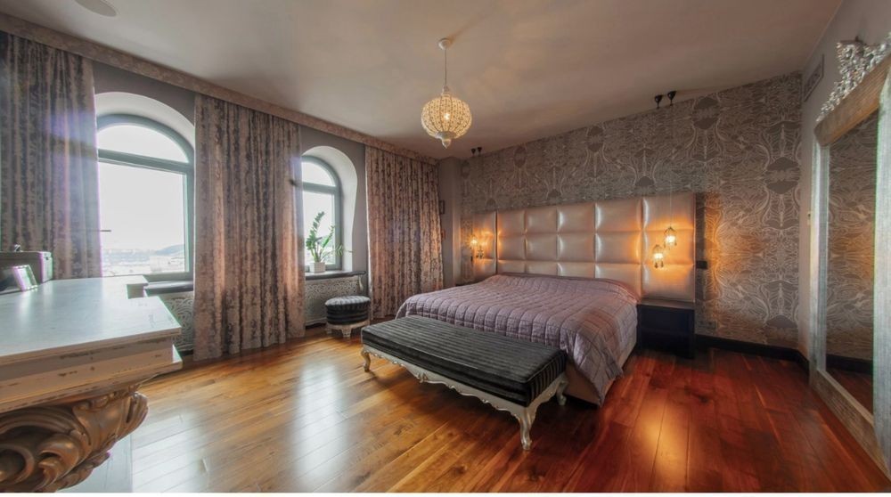 Квартира площею 200 кв. м розташована у новому будинку на 8-9/11 поверсі. У квартирі на першому рівні: кухня-вітальня з виходом на 3 балкони звідки відкривається чудовий краєвид на поділ. Дніпро., гостьовий с/в, гардероб. Другий рівень: 3 спальні, 3 з/в, 2 вбиральні кімнати, балкон. Виконано дорогий ремонт у стилі арт-деко з використанням найкращих світових виробників меблів та техніки. 2200.е в месяц. Без комиссии