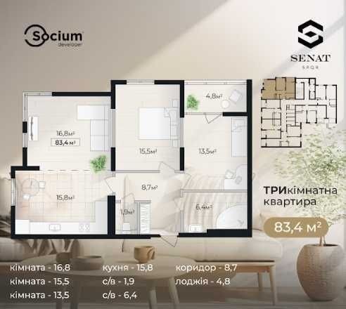 Продам 3-Кімнатну по вул. Хоткевича. Шикарний вид на місто та парк. Простора 3-кімнатна квартира з ергономічним плануванням, кухня студія, 2-а санвузли великий коридор. Тут можна виконати найсміливіші ваші дизайнерські рішення Оплата - 100%, або розтермінування із перший внесок від 35%, Переваги ЖК "Сенат": Ідеальне розташування-поруч парк, школи, садки, магазини. До центру міста 10хв Сучасна архітектура: Просторі квартири з панорамними вікнами, дизайнерські холи, відеоспостереження. Комфортна прибудинкова територія: Дитячі майданчики, зони відпочинку для дорослих та дітей.