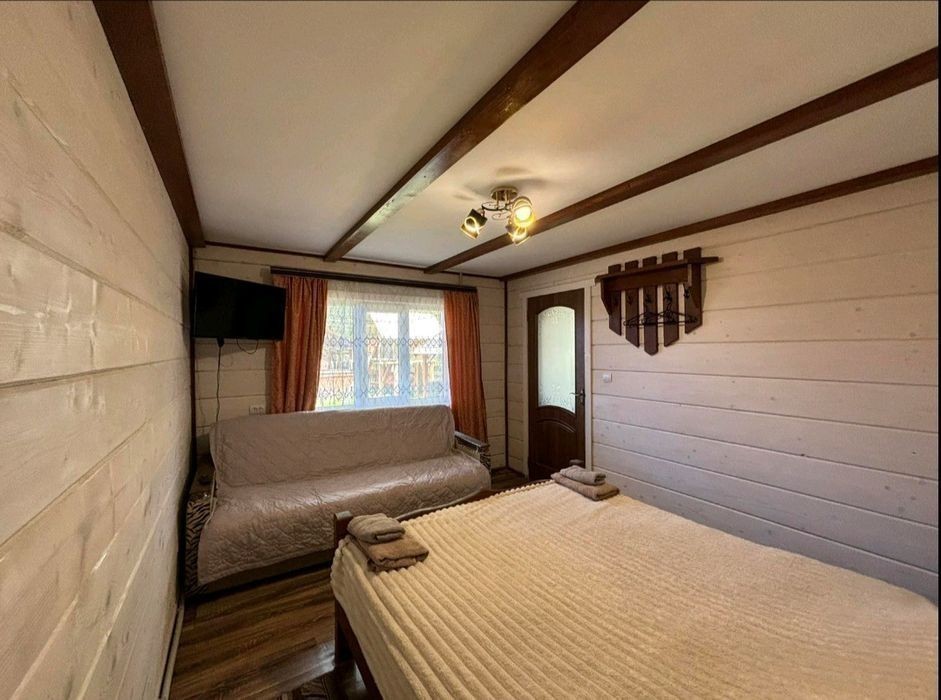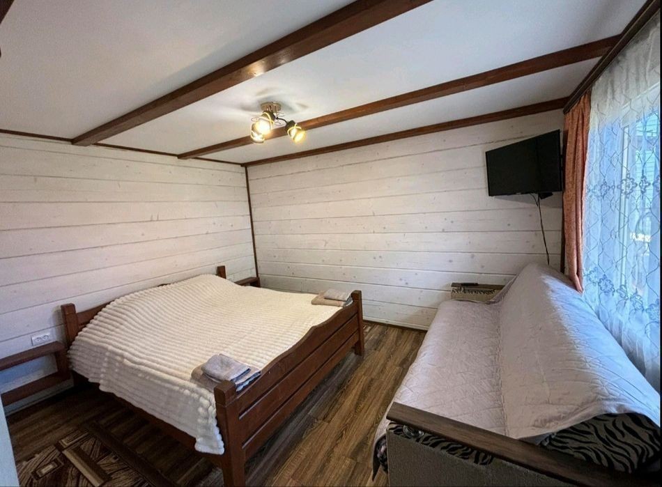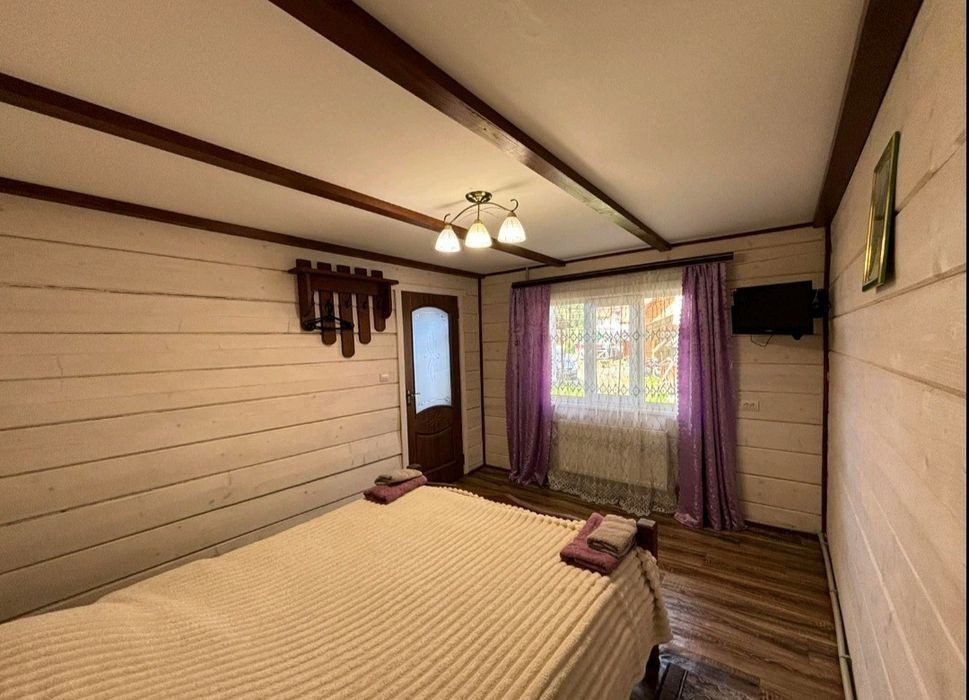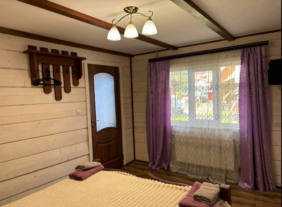 Запрошуємо на відпочинок у мальовничі Карпати Котедж «ЗАТИШНІ КАРПАТИ» Розташування: На початку села Синевирська Поляна, 2 км до центру села, 5 км до відомого високогірного озера Синевир, 4 км до найближчого гірськолижного витягу. Під'їзд - асфальтована дорога. Опис: На території розташований двоповерховий котедж на 2 номери (4-6 місць), альтанка, мангал, гойдалка. На першому поверсі - кухня (електрична плита, мікрохвильова піч, холодильник, електрочайник, посуд, мийка, обідній стіл); 2 двомісні номери (у кожному - двоспальне ліжко, вішалка для одягу, телевізор; в одному номері є додаткове місце - розкладний диван); санвузол (душова кабіна, туалет, умивальник, фен). Опалення: автономне водяне. Водопостачання: холодна вода постійно, гаряча - бойлер на 100 л. Генератор для безперебійного електричного живлення. Харчування: Можна самостійно готувати їжу на кухні. Поряд є колиба, до найближчого магазину - 1 км. Сервіс, включений у вартість: Паркінг, виклик таксі. Інтернет Wi-Fi. Супутникове телебачення. Користування мангалом Зберігання багажу. Прибирання номерів, зміна постелі та рушників (2 на особу) - 1 раз на 7 днів або за потребою. Сервіс за додаткову оплату: Транспортні послуги. Прання та прасування одягу. Сауна - за домовленістю. Спорт, розваги: Походи в гори, збирання грибів та ягід, катання на конях, риболовля - за домовленістю.