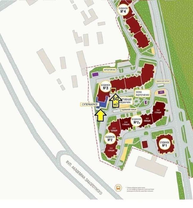 Продаж нежитлового приміщення на 1 поверсі площею 59,24 м2 прямо поруч з супермаркетом ТРАШ в ЖК Теремки, вул. Академіка Заболотного, 15. Одна з найкращих локацій в ЖК! Будинок №3. Поруч підземний паркінг. Поруч вхід в супермаркет ТРАШ. Перед великим двором, між двома самими великими в ЖК 25-ти поверховими будинками, неподалік від транспортної зупинки, підземного переходу та всього ЖК за адресою м. Київ, вул. Академіка Заболотного, 15-Г в ЖК Теремки у 25-поверхових будинках. ЖК ТЕРЕМКИ - це сучасний житловий комплекс, що складається із п'яти 25-поверхових будинків. Характеристики та переваги приміщення: - площа 59,24 м2; - потужність 18 кВт; - висота стелі без стяжки - 2,8 м; - пожежна сигналізація; - 2 вентканали з яких 1 прямий комерційний, прямо на дах; - санвузол; - поруч підземний паркінг ЖК. Запрошуємо до співпраці власників комерційних приміщень до співпраці на взаємовигідних умовах.