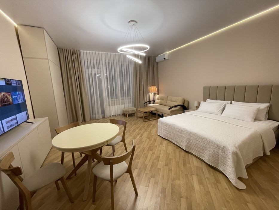 Насолодіться стильною атмосферою цього помешкання в центрі міста. Чудова тераса, поруч набережна, парки, ринок, аквапарк «Карпатія», ресторани. Для гостей кожен день італійське еспресо у подарунок! Ціна вказана за двомісне проживання. За кожне додаткове місто доплата 400 грн. Англійська білизна! Розмір ліжка Super King Size!
