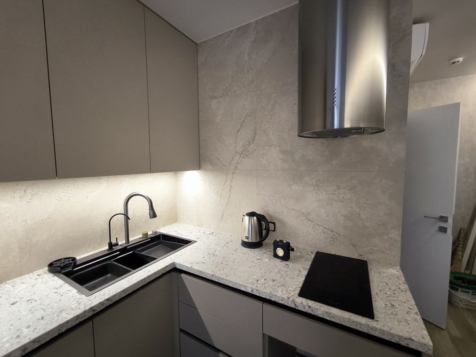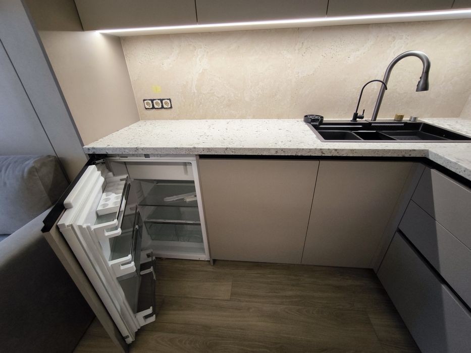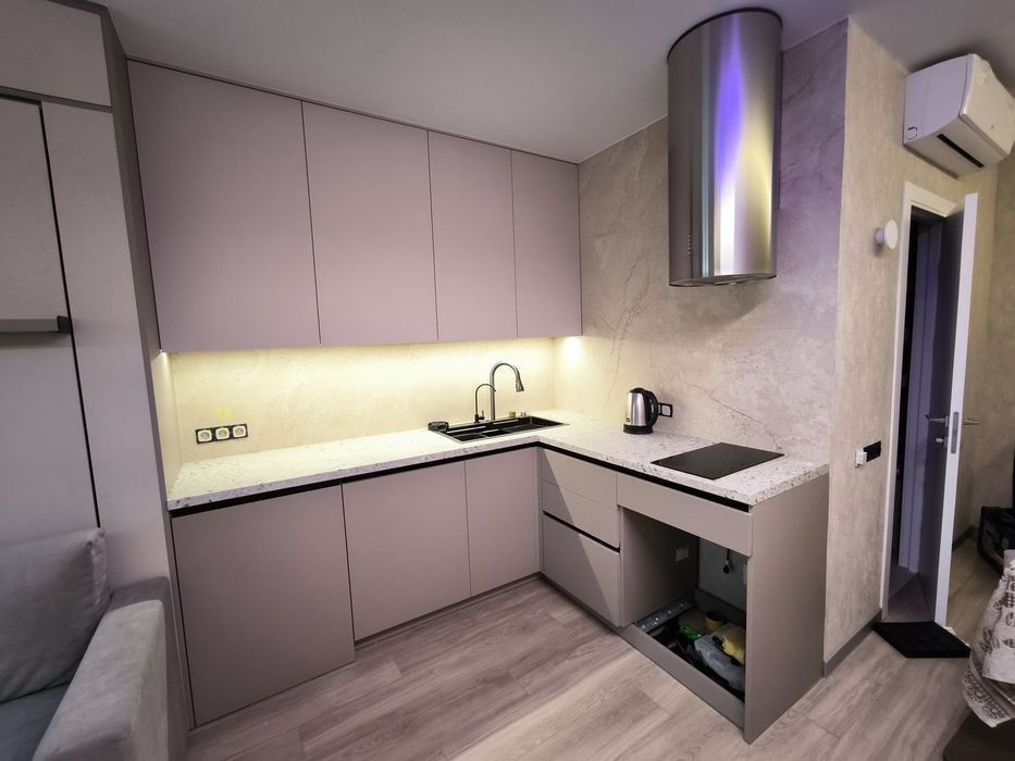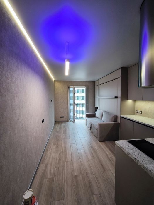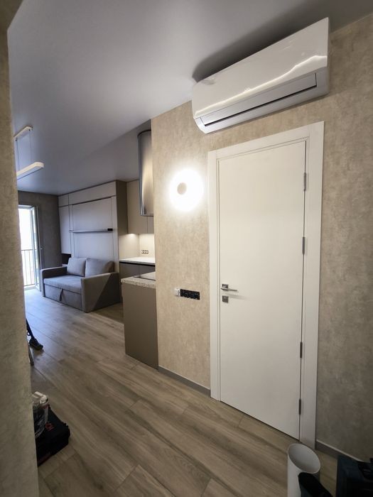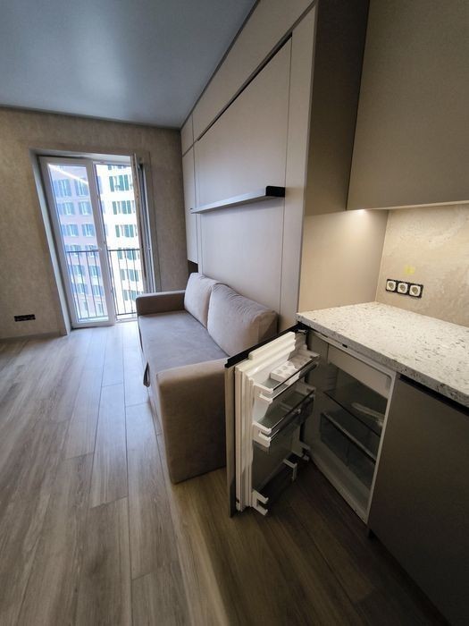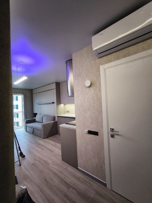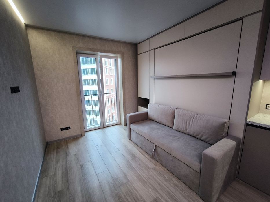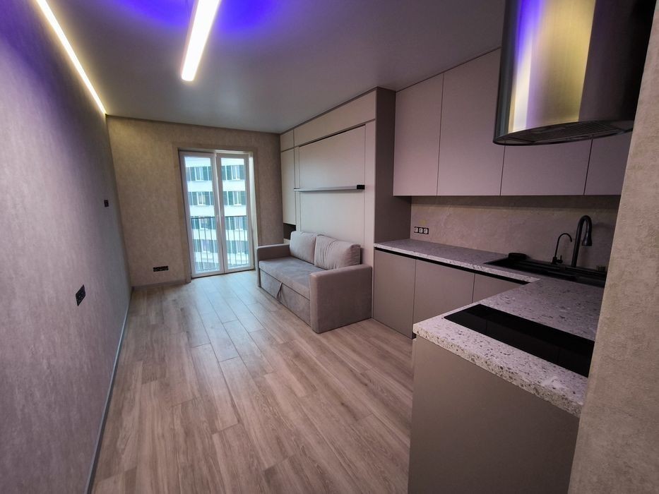 Продам квартиру студию к красивым и качественным ремонтом В квартире установлен качественный теплый пол по всей площади Кондиционер зима-лето серии Arctic (тепловой насос премиум класса) Диван + полноценная двуспальная кровать с ортопедическим матрасом Качественная сантехника Grohe + тропический душ Светодиодная лента премиум класса Дизайнерская европейская вытяжка Встроенная индукционная панель Бойлер 100л Фильтр питьевой воды Встроенный холодильник Libherr Автоматика Schneider Электро фурнитура Legrand Топовый роутер Microtick Умный светильник Итальянские обои из новой коллекции Встроенный карниз Алюминиевый плинтус Атермальная тонировка