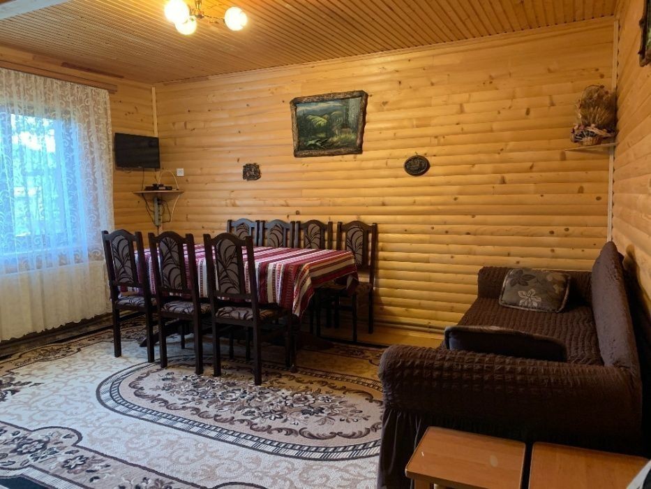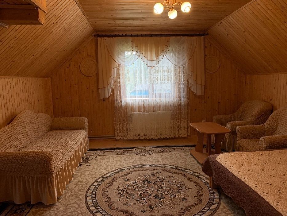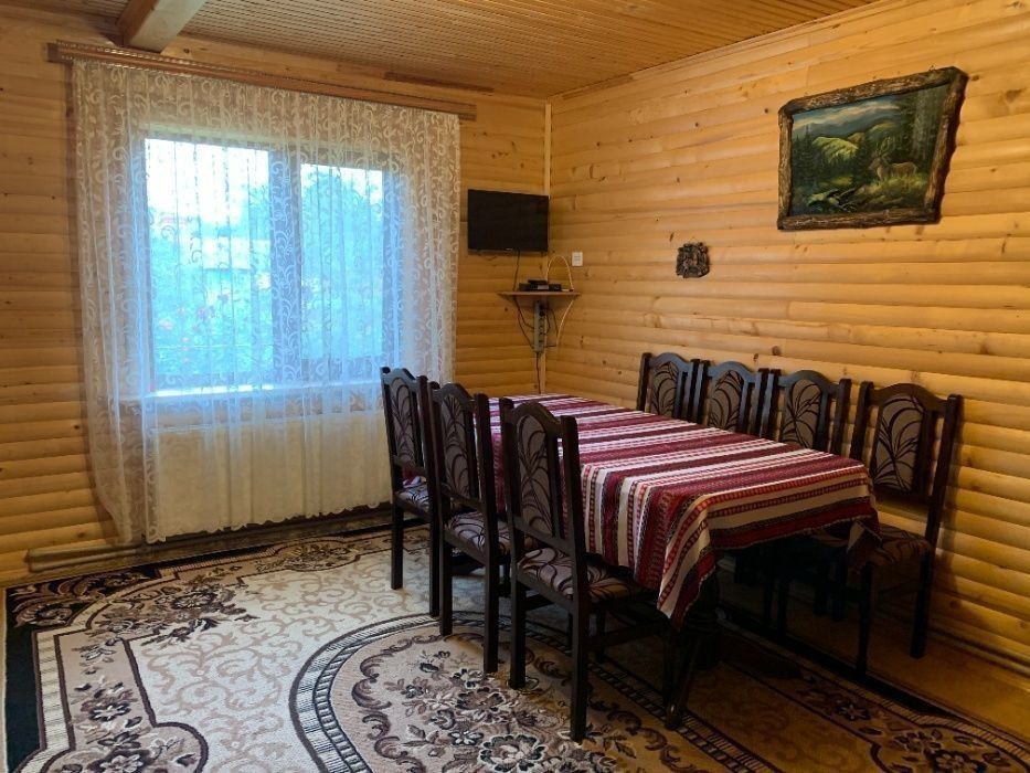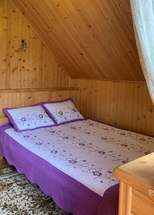 Двоповерховий котедж на 6 осіб с. Микуличин 5 км. від м. Яремче, 150 метрів від траси на Буковель. Котедж знаходиться біля річки Прутець та Прут, недалеко ліс. Парковка, альтанка, мангал, супутникове ТБ,WI-FI. На першому поверсі кухня-їдальня, обладнана всім необхідним для готування є розкладний диван, санвузол. На другому поверсі - велика кімната є двуспальне ліжко та розкладний диван, Ще одна кімната з розкладним диваном, на площадці ще один санвузол. Ціна залежить від кількості людей та днів оренди. Котедж здається весь, окремих номерів немає. Поряд з котеджем у сусіда є чани, можливо домовлятися. Звонити по телефону +38********58