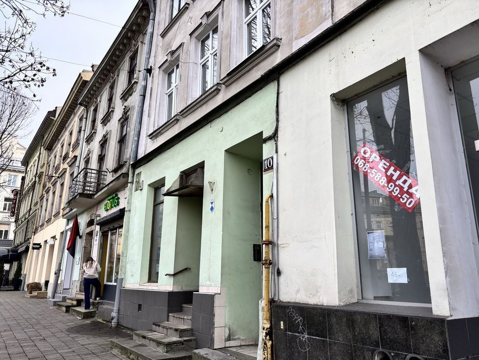 Оренда комерційного ФАСАДНОГО приміщення у самому центрі м. Львова, навпроти р-ку Добробут, 20 м. від Оперного театру; вартість оренди: 600 $+ КП. Точна адреса: пл. Ярослава Осмомисла. Приміщення загальною площею 46 кв. м ( торг. зал з фасаду 20 м. + допоміжне приміщення 20 кв. м. + санвузол). Поверх 1-1 з 3-х. Є два входи ( з фасаду 2 входи : з подвірʼя та у двір). Світло 3 фази 10кв ( газ відʼєднано); обігрів приміщення - кондиціонером. Приміщення вже вільне. Потребує ремонту ( сигналізація проведена). Власник надає "пільговий період оплати оренди" на час проведення ремонту. Для узгодження часу огляду - телефонуйте. Розглядають тих орендарів, яких цікавить довготривала ( від 1 року і довше).