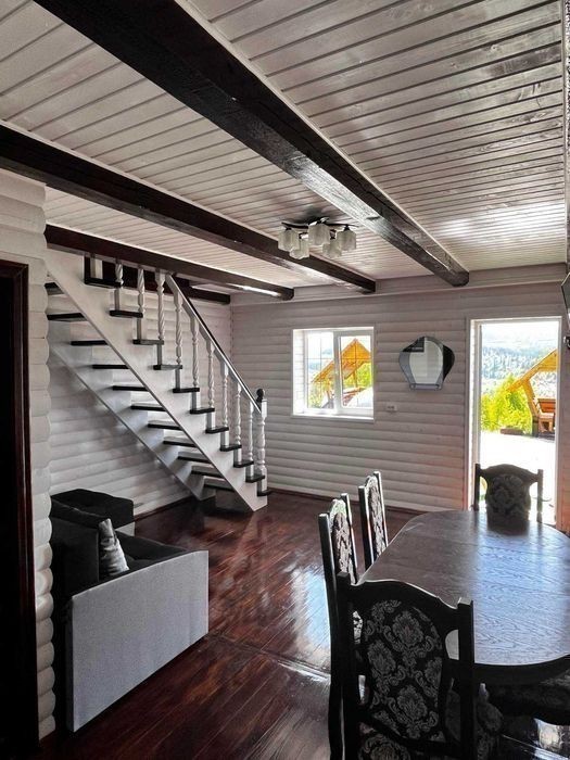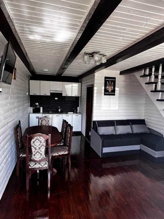 Працює два котеджі. Кожний котедж розрахований на 4-6 чоловік. Разом в двох поміщається 12 чоловік. По проекту вони ідентичні. Тільки в одному на другому поверсі дві окремі кімнати а в другому прохідна кімната. Знаходиться 1.5км від центральної дороги. 1.3 км бруківка і 300м грунтова дорога з підйомом. Зимою тільки повнопривідні авто. Один котедж запущений в 2023р. А другий весною 2024р. На території є великий басейн з видом на гори, міні бар, сауна, альтанка, є дитячий майданчик. Є авто для подорожей в гори. Недалеко полонина "Горган"1.5км. Близько ліс, річка. Дуже красивий краєвид. Видно ціле село як на долоні. Запрошуємо. Звертайтесь за тел. 09******47.Ціна вказана за один котеджґ. Запрошуємо. Звертайтесь