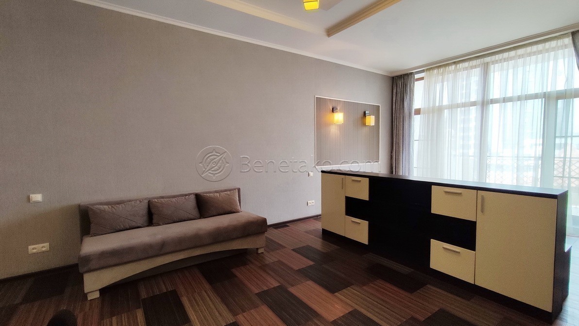 Код: 650. ДОЛГОСРОЧНАЯ АРЕНДА (в летние месяцы цена повышается: июнь, июль, август по 600$/мес). Студийные апартаменты с террасой в Ж/К «Аркадийский Дворец», ул. Гагаринское плато 5/3, 4/12 эт. дома, общая 59 кв. м. (включая террасу). Евроремонт, необходимая мебель и бытовая техника, посудомоечная машина. В комнате двуспальная кровать, диван, встроенная кухня, LCD - телевизор, кондиционер. Аренда возможна от: 3-х месяцев (по предварительному согласованию). Цена аренды может изменяться в зависимости от: сезона, количества постояльцев и срока проживания. Наличие объекта, стоимость и условия аренды, а также важные для вас детали интерьера (либо экстерьера) уточняйте непосредственно перед просмотром по: Viber/WhatsApp/Telegram или E-mail. КОМИССИЯ ЗА УСЛУГИ РИЭЛТОРА - 50% (единоразово от месячной стоимости аренды).