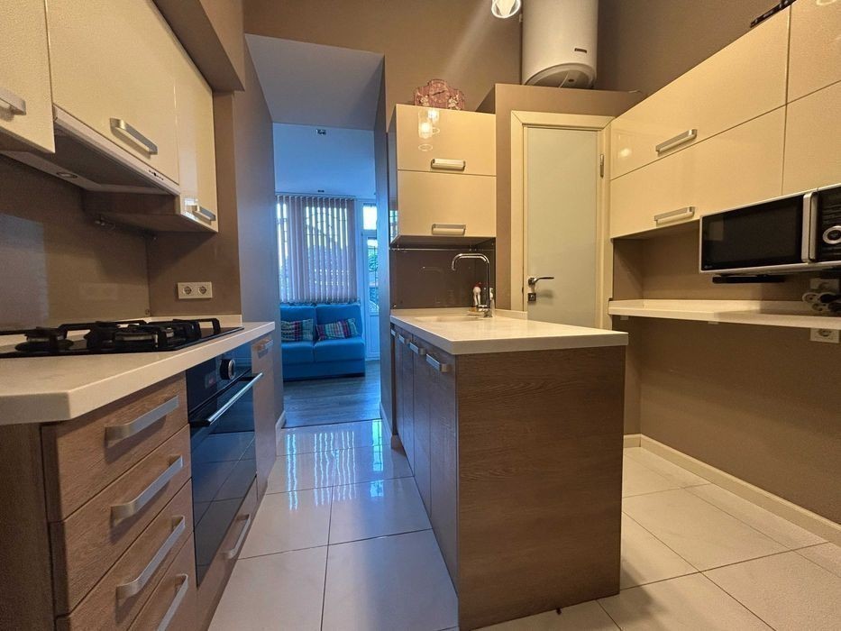 Видео по квартире youtube.com/shorts/YBkjMbcSgYM?feature=share Квартира находится в центре Одессы по улице Греческой. У квартиры есть свой закрытый двор с зоной барбекю. В квартире выполнен капитальный ремонт с полной заменой всех коммуникаций. Под квартирой цокольный этаж жилой, поэтому отсутствует проблема с канализаций. Две раздельные комнаты, кухня переходит в гостиную откуда выход в свой двор. Высота потолка -3м. Оборудована полностью дорогой мебелью и техникой. Дизайнерские межкомнатные двери. Установлена охрана и видеонаблюдение, решетки на окнах. Окна выходят во двор, поэтому очень тихо. Дом крепкий. Есть видео.