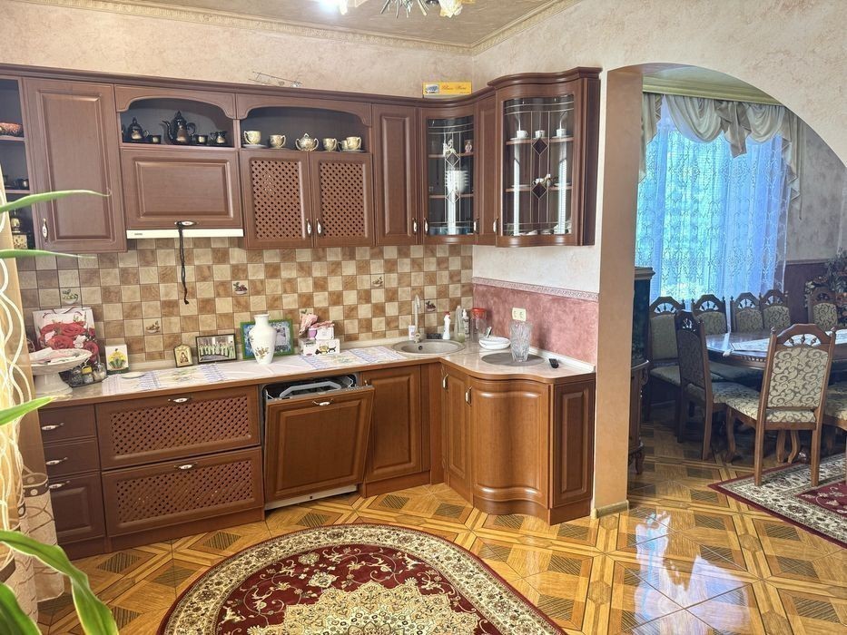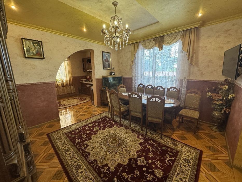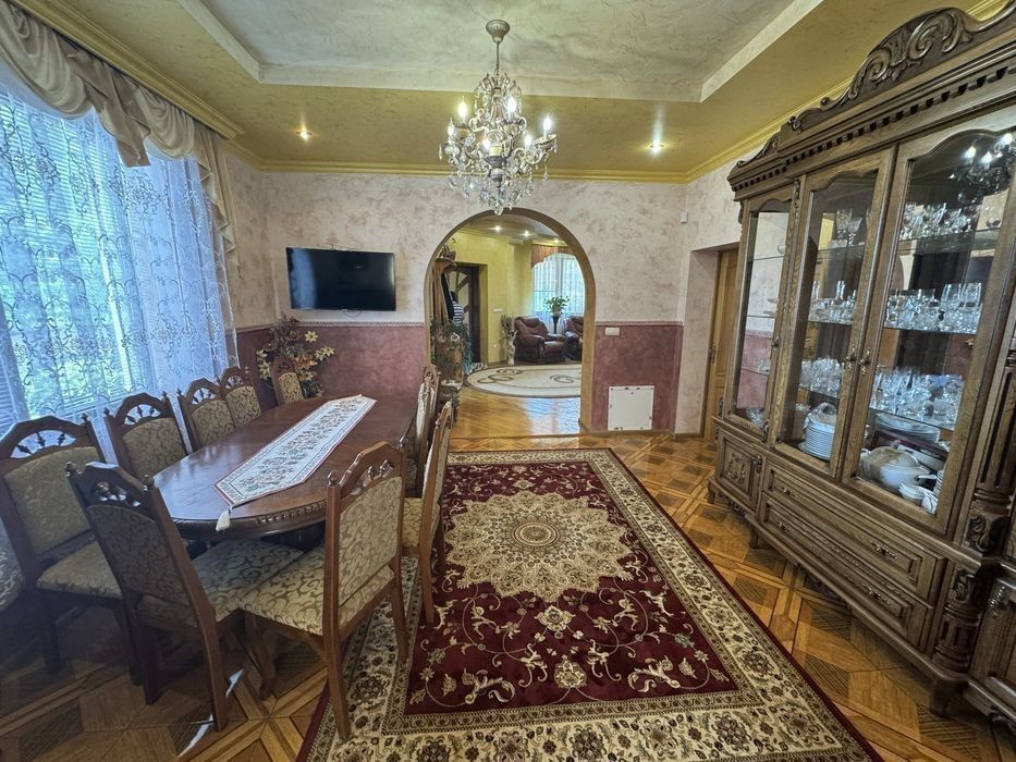 Дуже гарний будинок в місті Мукачево, район вулиці Франка, район Монастиря на Франка. Тиха і затишна тупікова частина вулиці, багато дерев та інших різноманітних зелених насаджень навколо. Асфальтована вулиця. Пуруч гарні сусіди, по вулиці лише нові будинки 2000х років побудови. Ділянка 8.08 сот. Багато різноманітних зелених насаджень, вся територія дуже доглянута. Загальна площа будинка 221 квм, в тому числі гараж 18.5 кв. м., підвал 20.4 кв. м. На дворі є навіс на машину, ворота автоматичні, мангальна зона, господарські споруди. Будинок з ремонтом, можливий продаж з меблями, за домовленістю і погодженням. З власником. Більше інформації по телефону. Комісія агентства.
