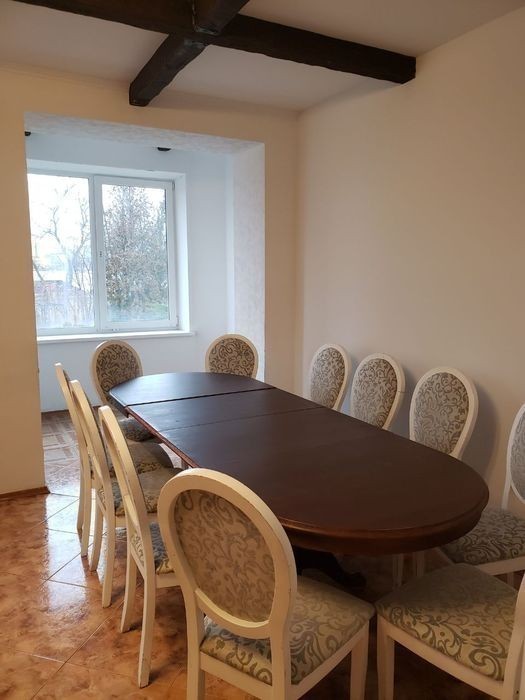 Затишний будинок з гостьовим будиночком та альтанкою з мангалом підійде як для сімейного відпочинку, так і для компанії до 15 осіб. Від власника. У будинку 10 спальних кімнат, вітальня, кухня, 2 санвузли, душова. На території є гостьовий будиночок із двома спальнями та санвузлом. Також на території альтанка з мангалом, столом, стільцями та диваном, відкритий вуличний басейн із шезлонгами, невелике футбольне поле, ігровий дерев'яний дитячий будиночок. У розпорядженні гостей повністю обладнана кухня з посудомийною машиною та меблями і великою душовою кімнатою. Телебачення та інтернет є. Рушники, постільна білизна, посуд. Пн-чт від 7000 Пт та нд від 10000 Сб від 12000