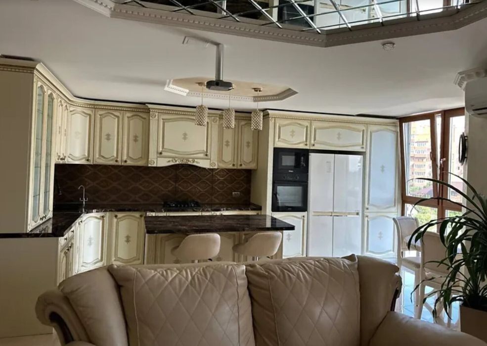 Пропонується на продаж квартира на масиві Новий світ. Загальна площа 92 кв. м. Квартира дворівнева, гарне планування, просторі кімнати. Зроблено якісний ремонт, мармурові сходи з кованими бильцями, камін. При продажі залишаються меблі та техніка. Два санвузли. Гарний, облаштований двір, доглянута прибудинкова територія, поруч набережна.