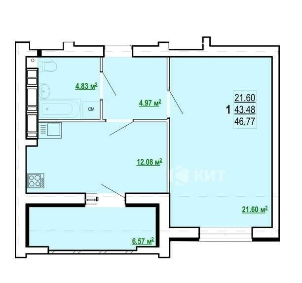 1к 47м2, ЖК Казка (ЖК Сказка, Холодная Гора, ДОМ СДАН), 121620