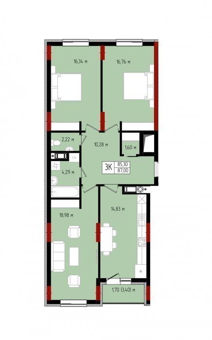 - 87 м²