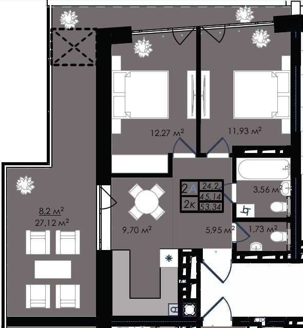 Продаж 2 кім. квартири в новобудові з терасою ЖК Простір